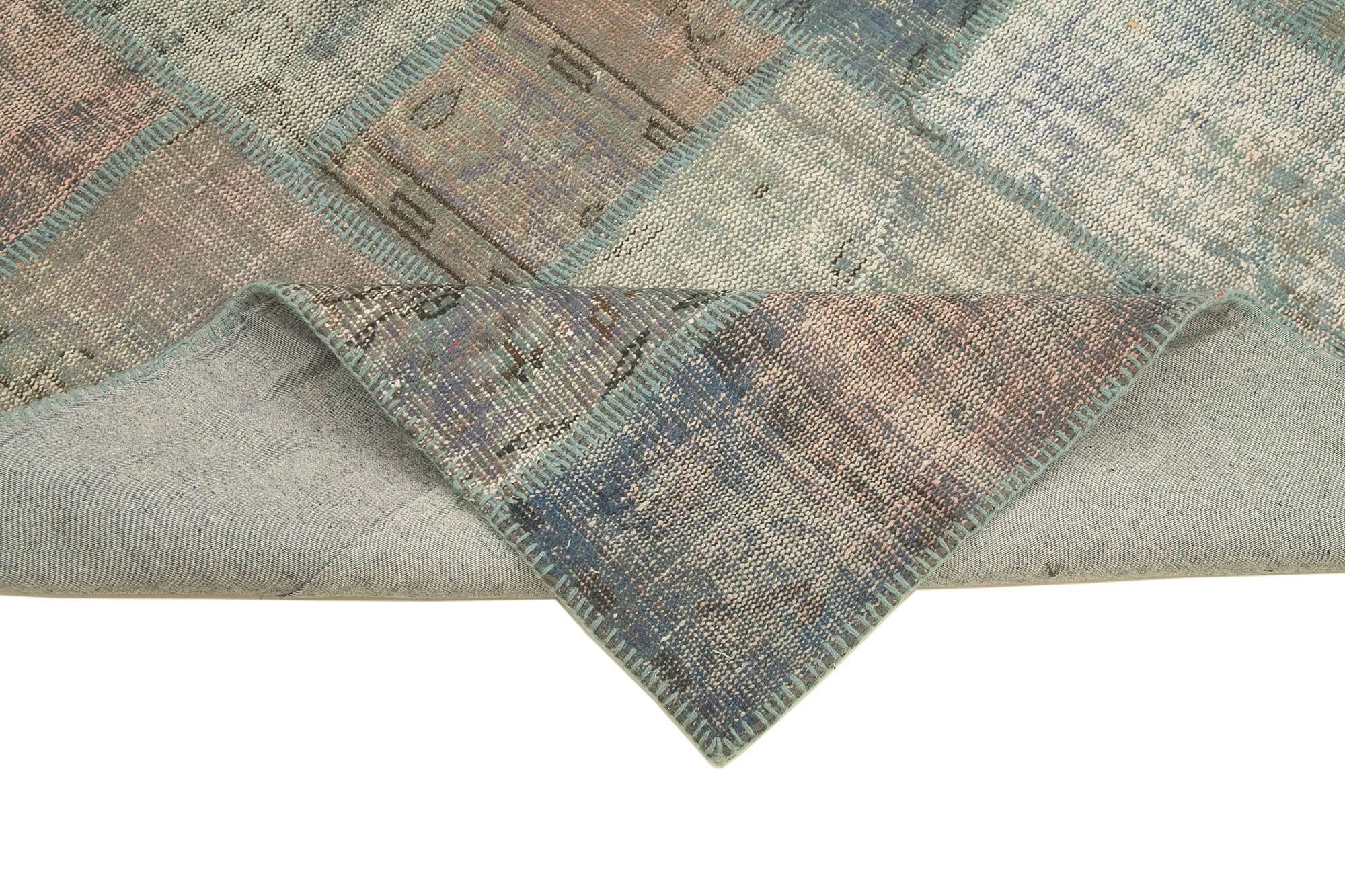 Handmade Area Rug - Blue Patchwork Cotton Wool Vintage Hand Knotted Carpet 5'10''x8'1''