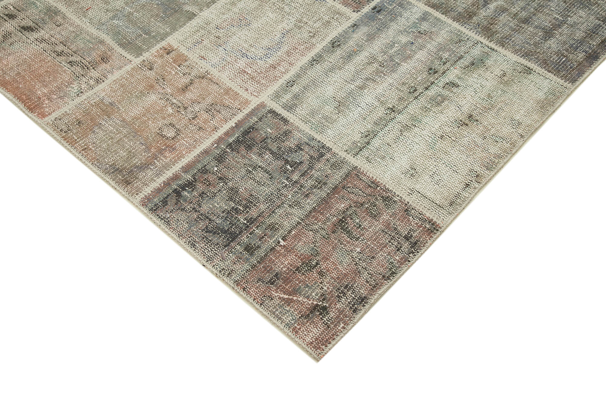 This handmade area rug is a stunning grey patchwork carpet that combines the finest cotton and wool fibers to create a vintage hand woven rug perfect for enhancing any living room. Crafted using traditional Turkish hand knotted techniques, this natural fiber rug offers both durability and timeless style. Measuring 5'7''x7'10'', this soft wool floor covering features a patchwork style rug design that adds warmth and character to your home. Each handcrafted cotton carpet is carefully selected, cleaned, and treated with special washing methods to neutralize and subtly alter the original colors, ensuring a unique decorative floor rug with authentic vintage charm.