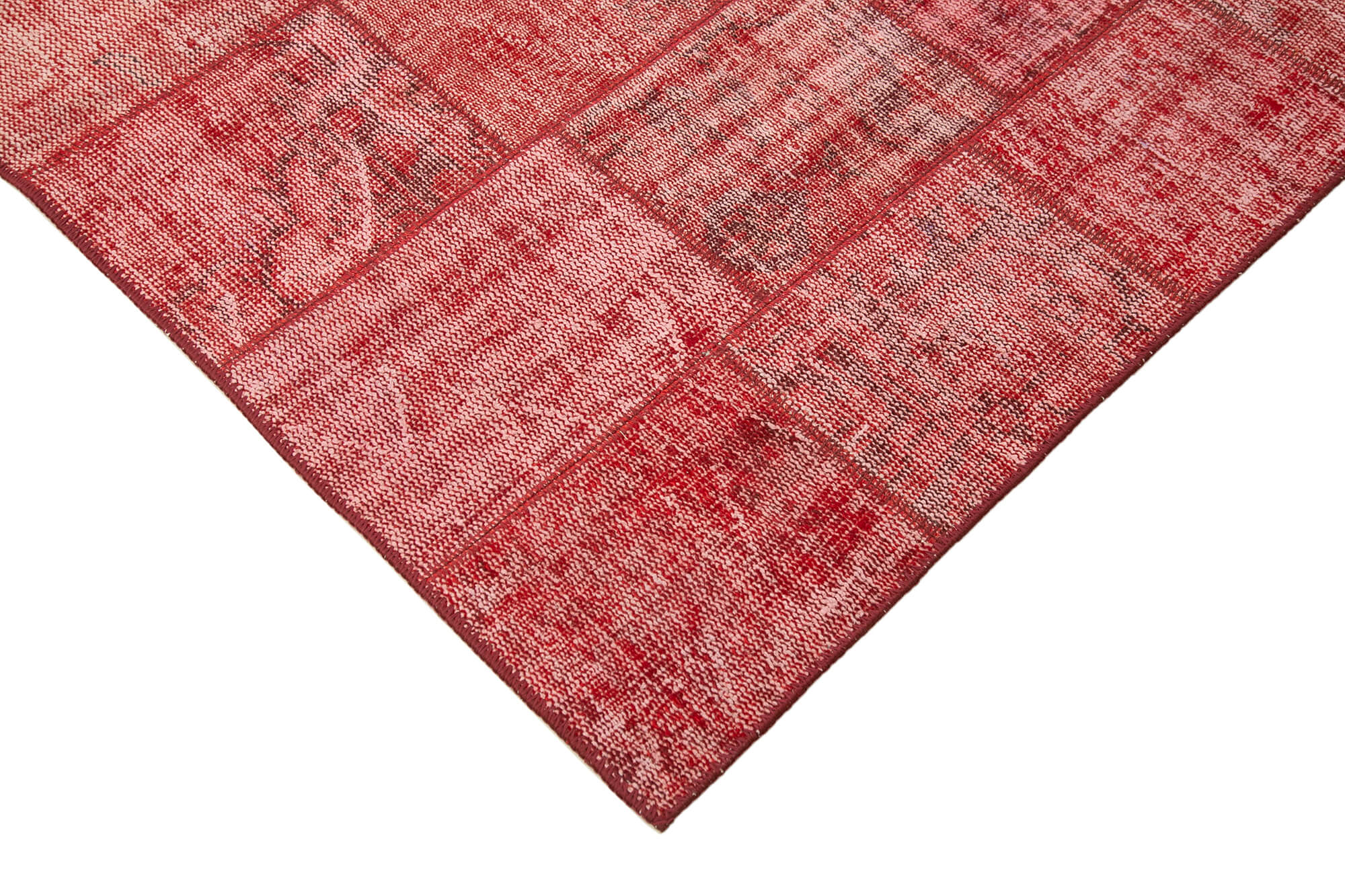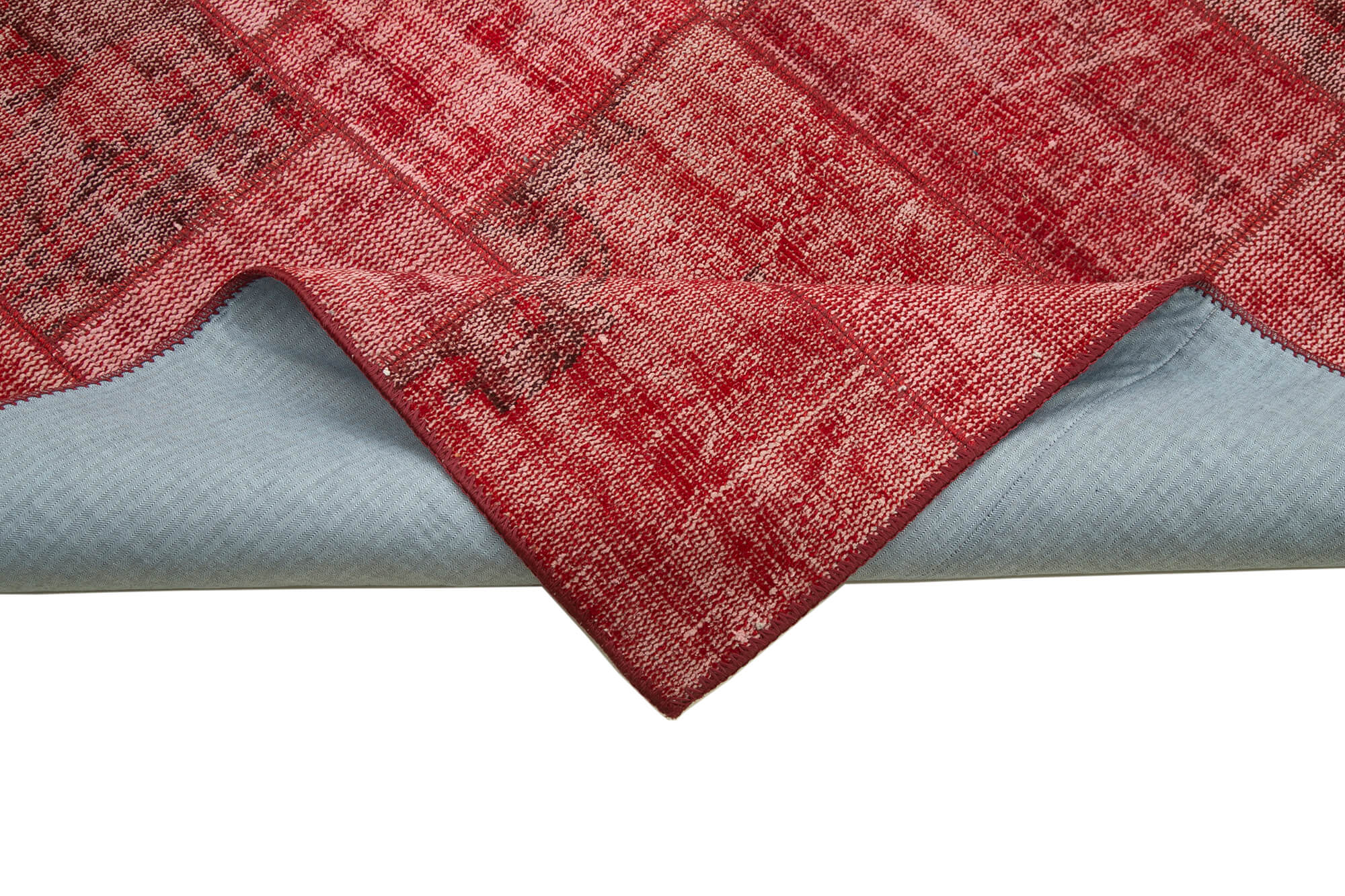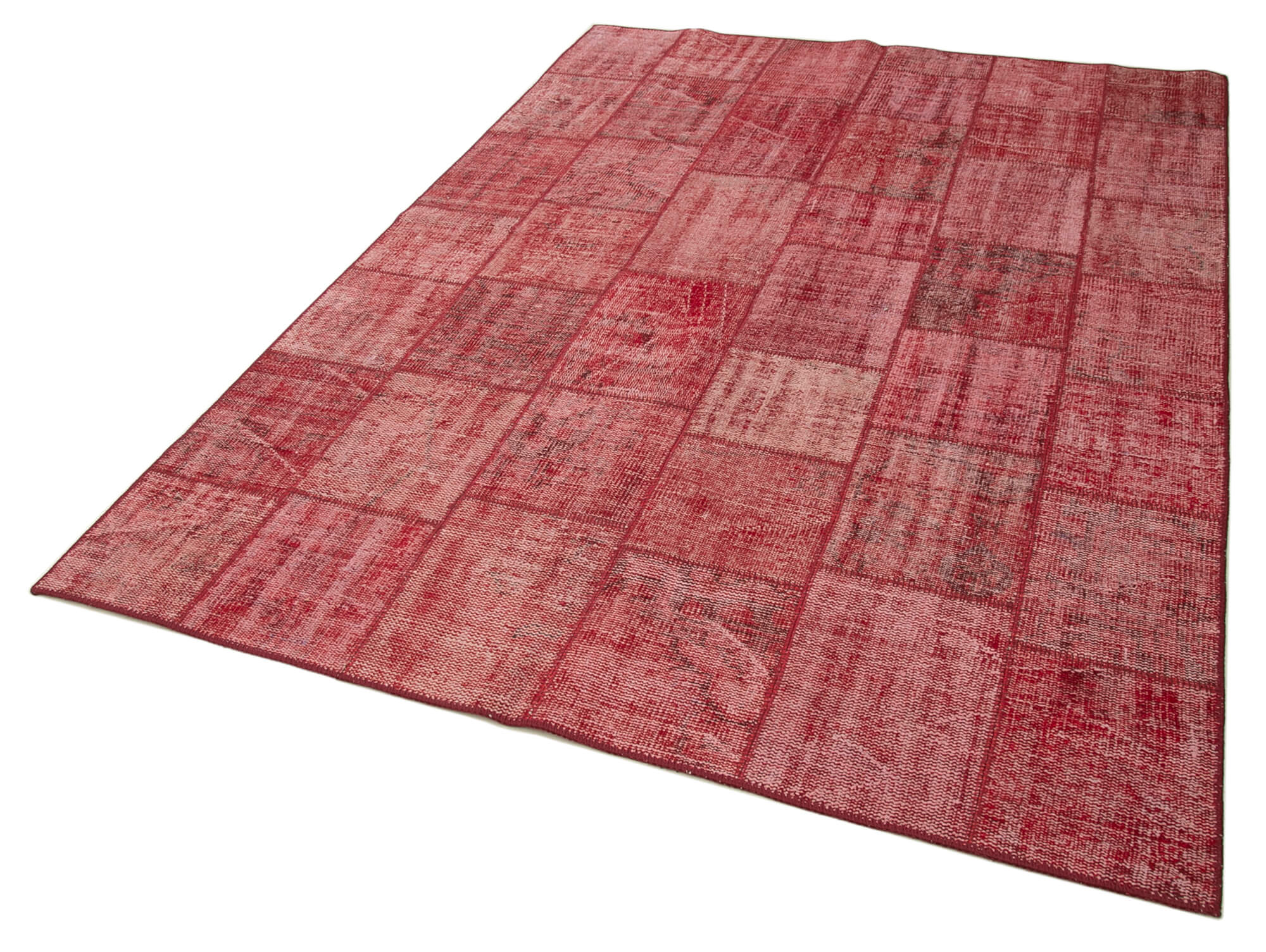Handmade Area Rug - Red Patchwork Cotton Wool Rug 5'8'' x 7'10'' | Artisan Crafted
