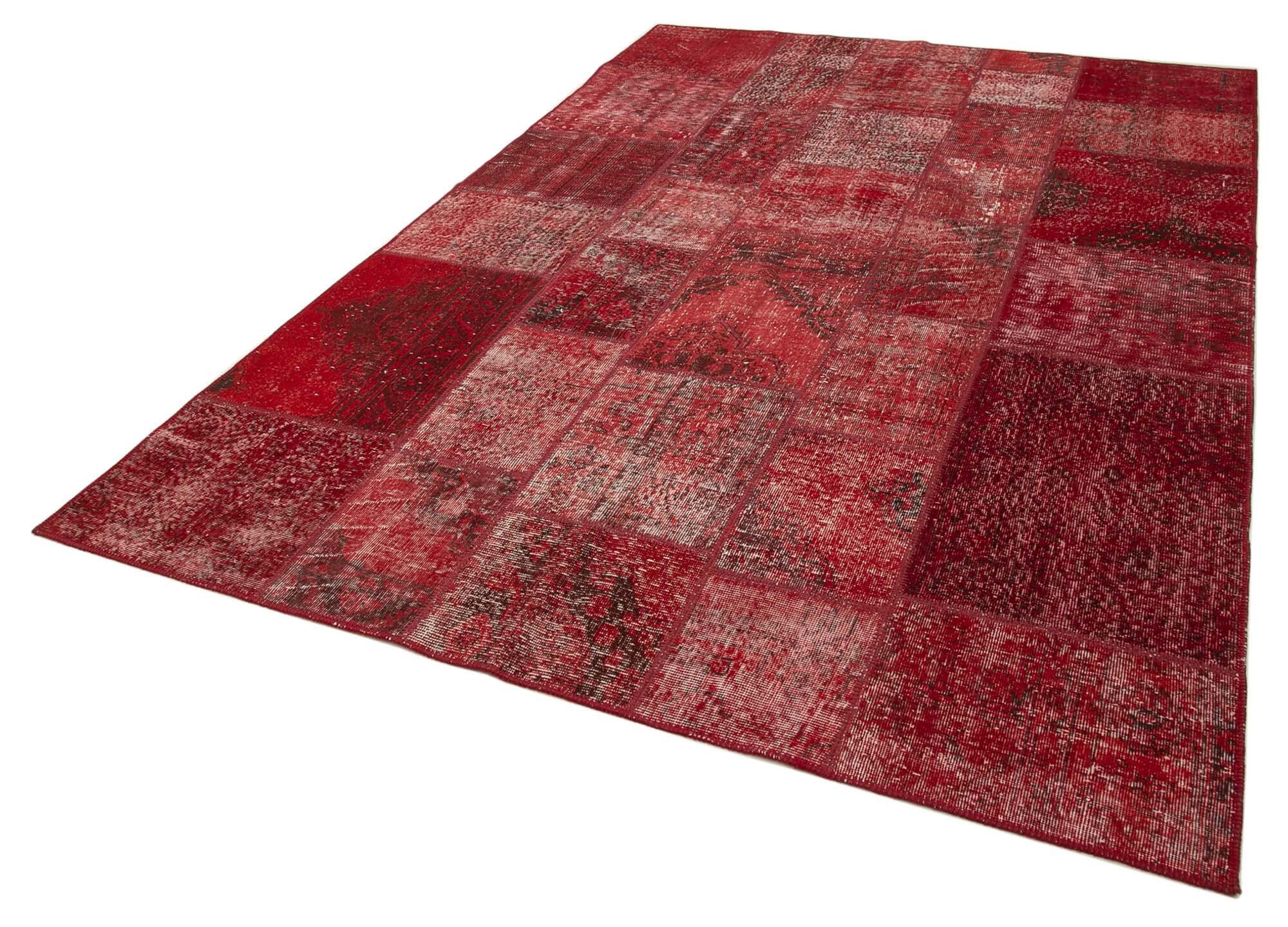 Handmade Area Rug - Kirk Yama Red Patchwork Cotton Wool Carpet 6'7''x9'10''