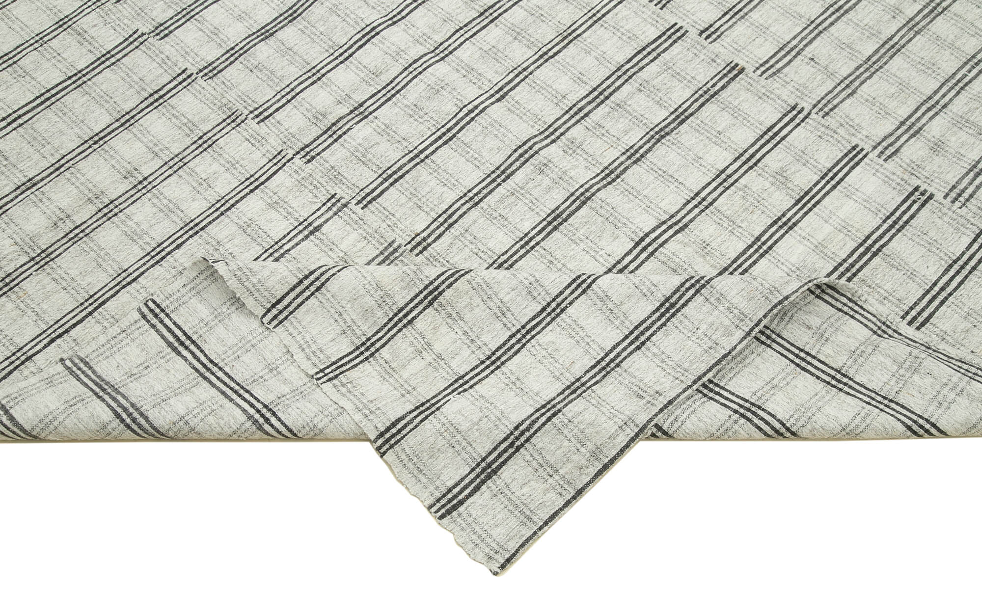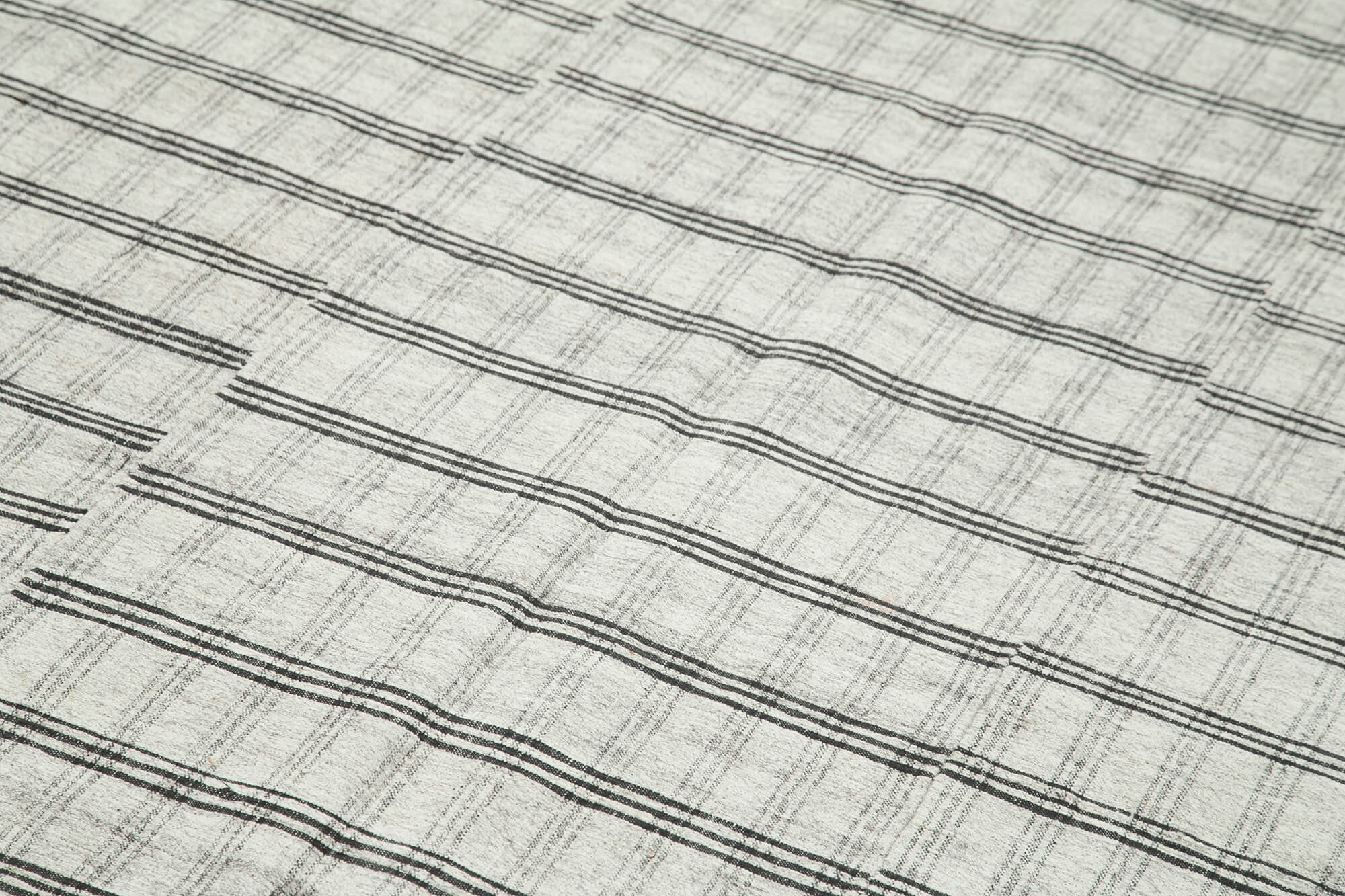 Striped Kilim Beige Striped Cotton Wool Handmade Area Rug 5'5'' x 9'1''