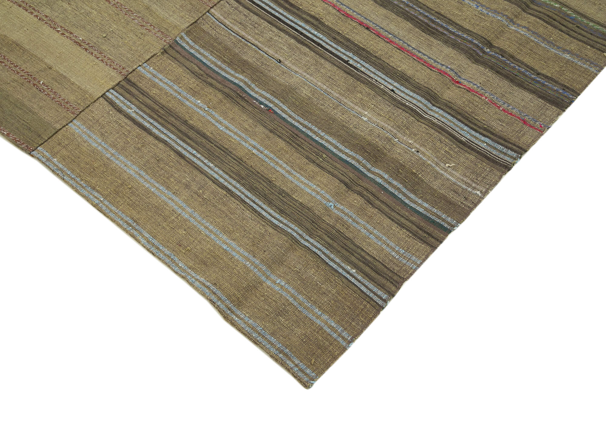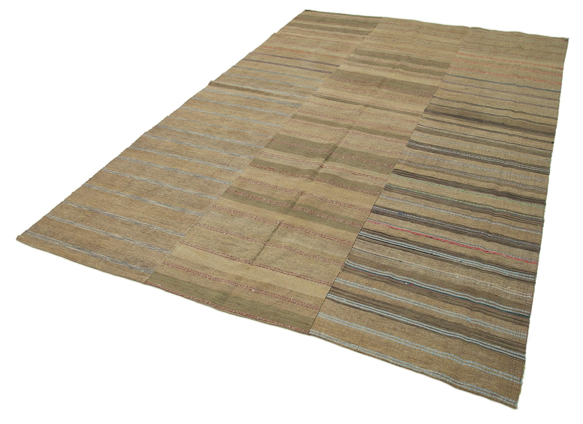 Striped Kilim Brown Striped Cotton Wool Handmade Area Rug 6'1'' x 9'7''