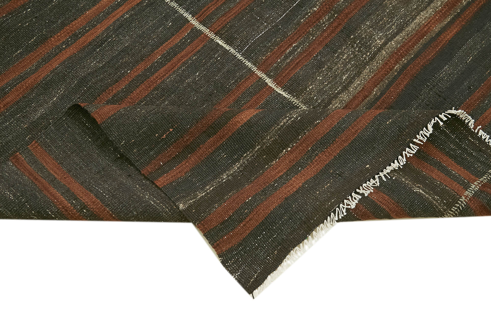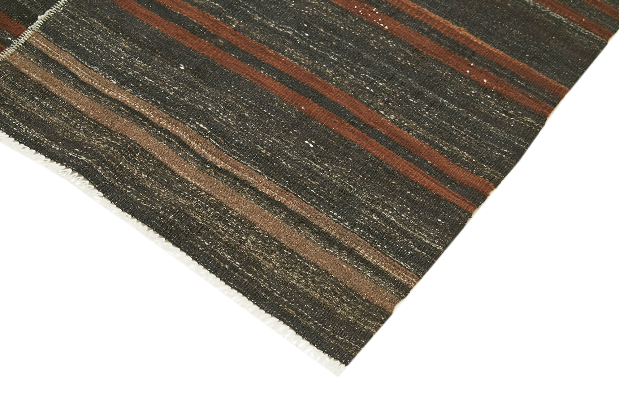 Striped Kilim Brown Striped Goat Hair Handmade Rug 4'6'' x 9'11''