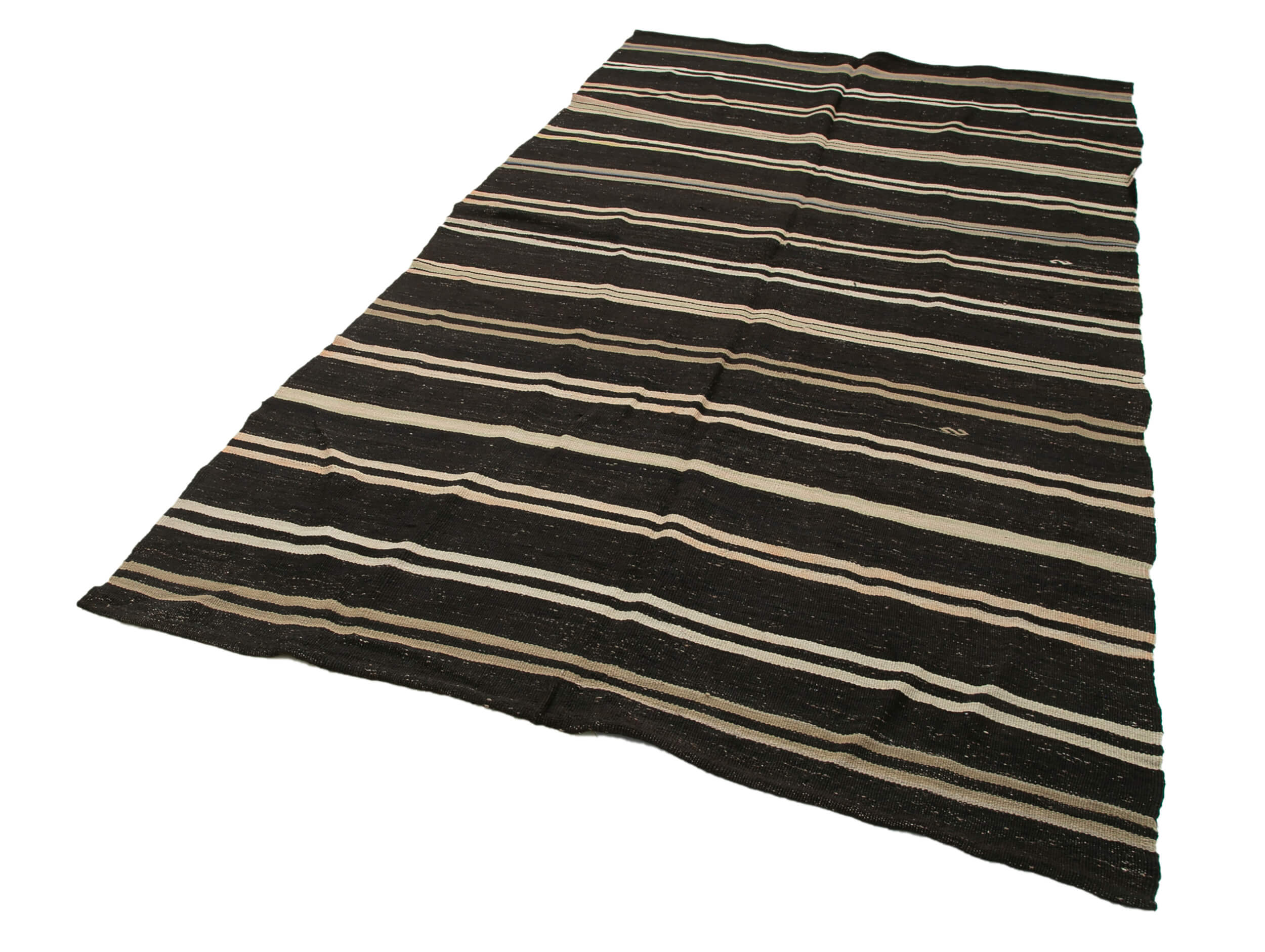 Striped Kilim Brown Striped Goat Hair Handmade Rug 5'7'' x 10'1''