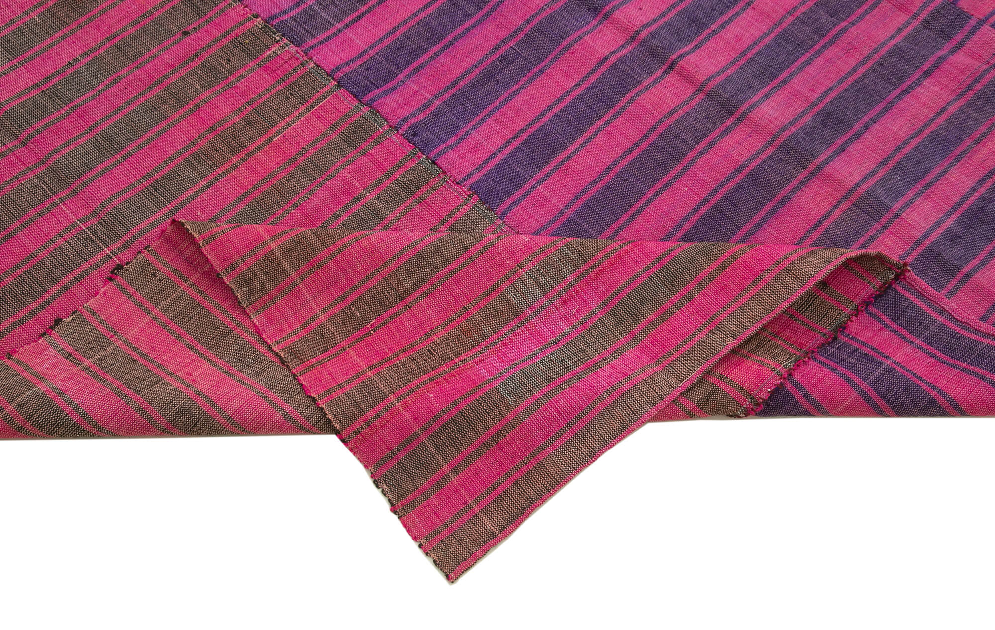 Striped Kilim Pink Striped Cotton Wool Handmade Area Rug 6'2'' x 9'3''