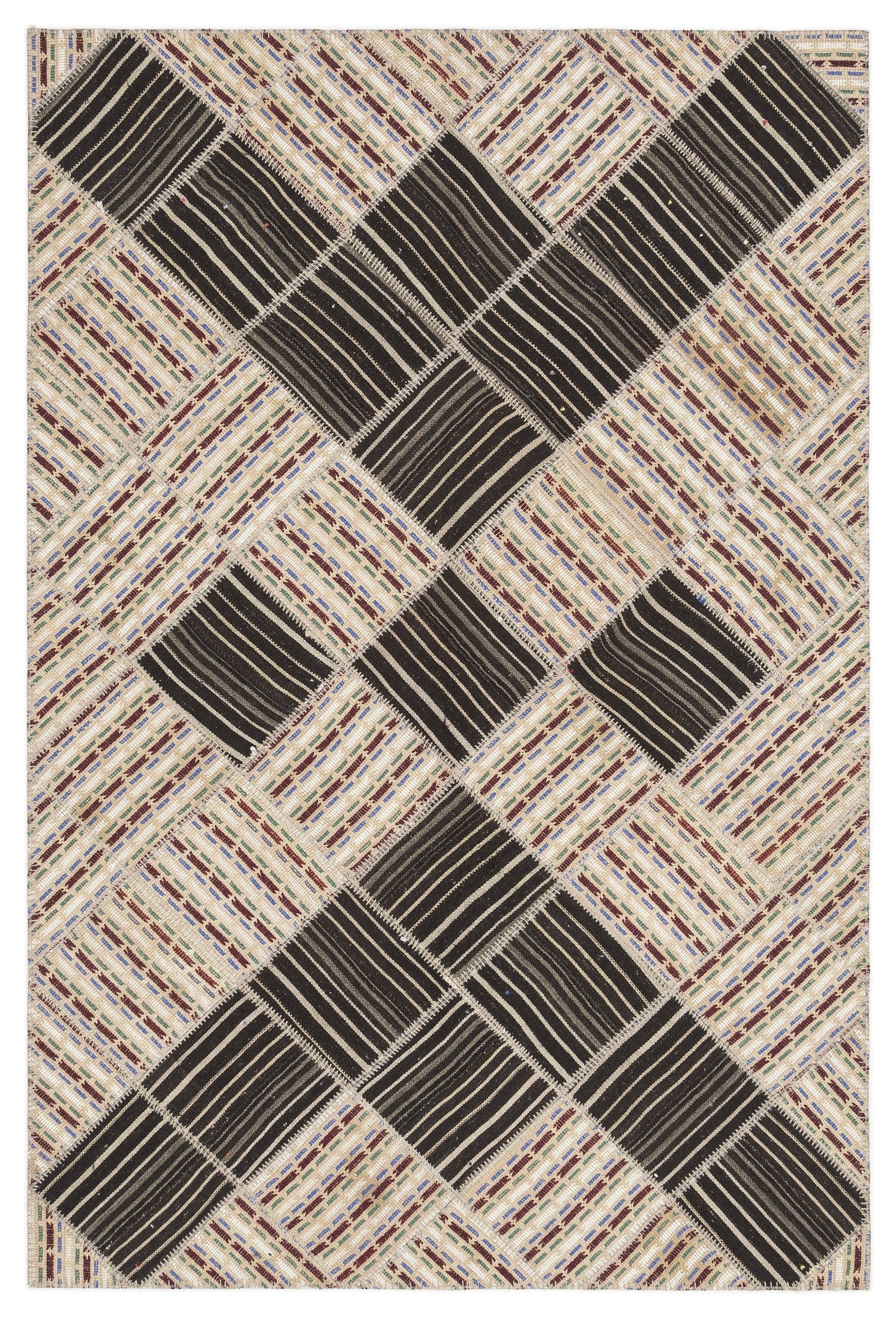 Teselya Beige Striped Wool Handmade Area Rug 5'9" x 8'8"