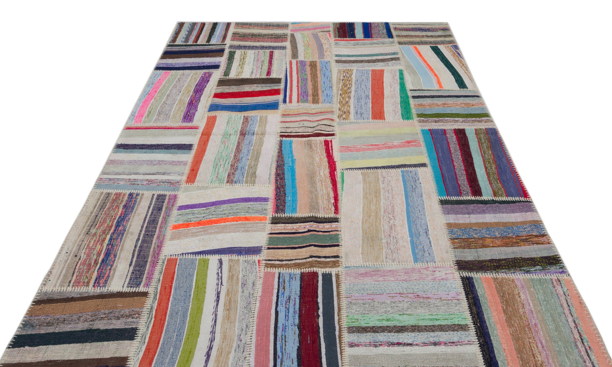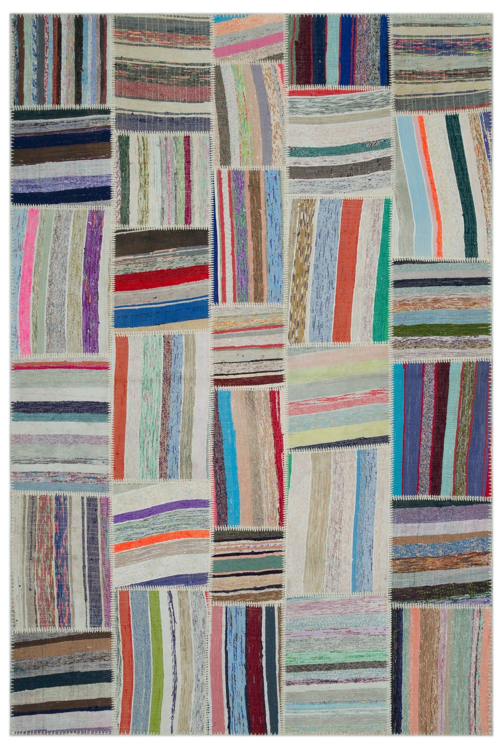 Teselya Beige Striped Wool Handmade Area Rug 6'1" x 9'1"