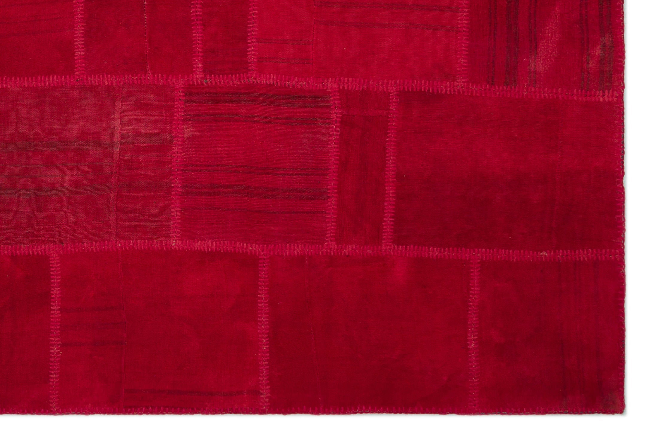 Teselya Red Patchwork Wool Handmade Area Rug 6'6" x 9'10"