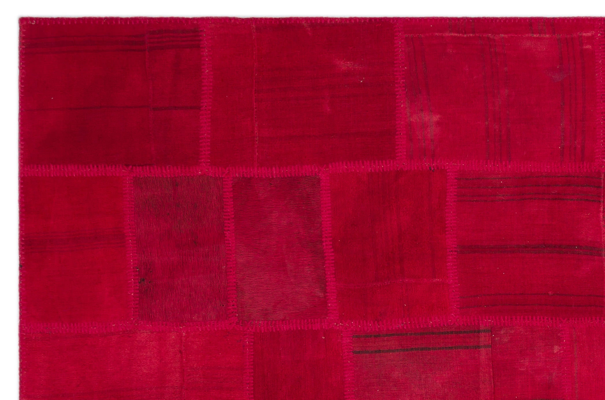 Teselya Red Patchwork Wool Handmade Area Rug 6'6" x 9'11"