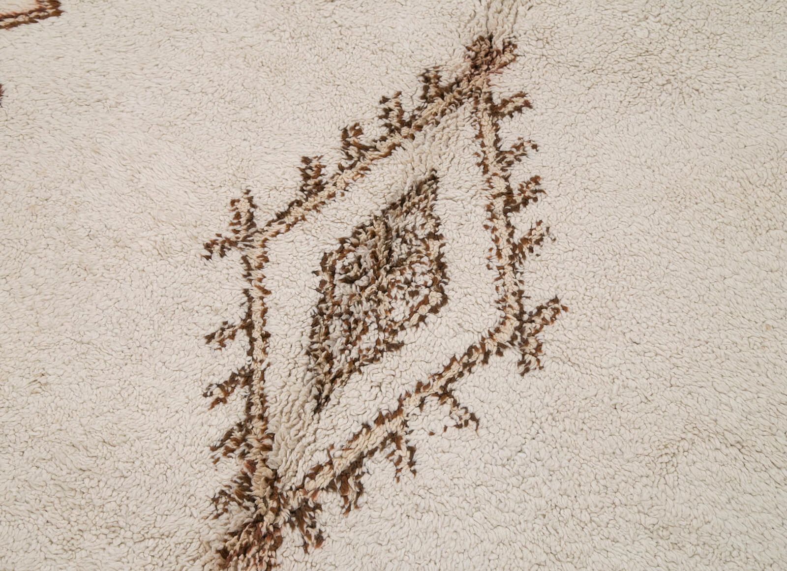 Experience the blend of tradition and artistry in this traditional woven carpet. The vintage handwoven rug’s intricate geometric design offers a sophisticated look that pairs well with modern or classic interiors. As a durable living room rug, it withstands daily use while maintaining its elegant appearance. Choose this beige cotton wool rug for a unique piece that reflects expert craftsmanship and heritage.