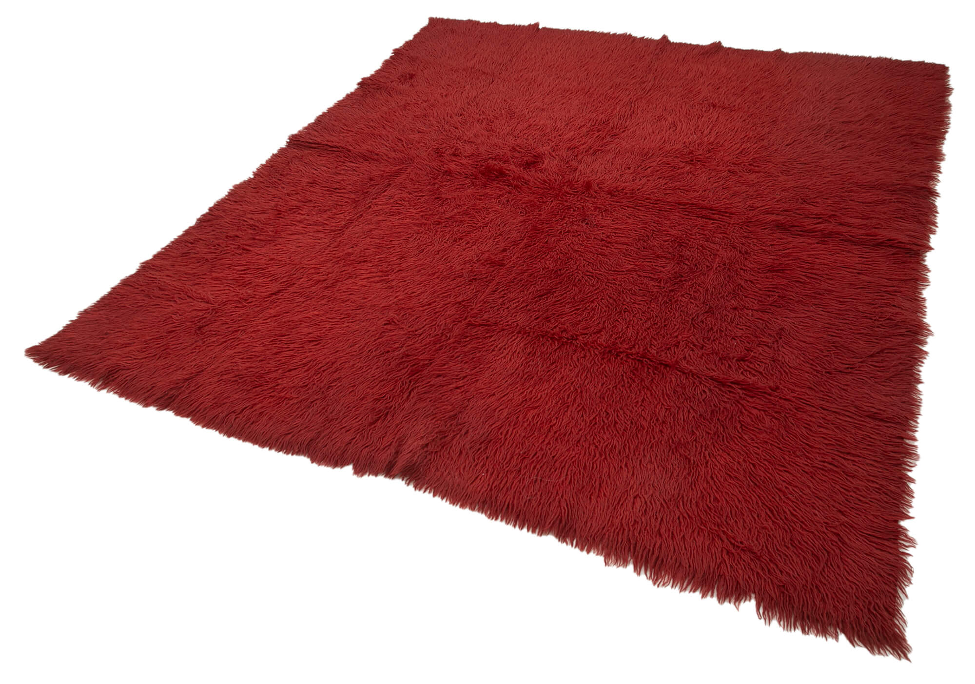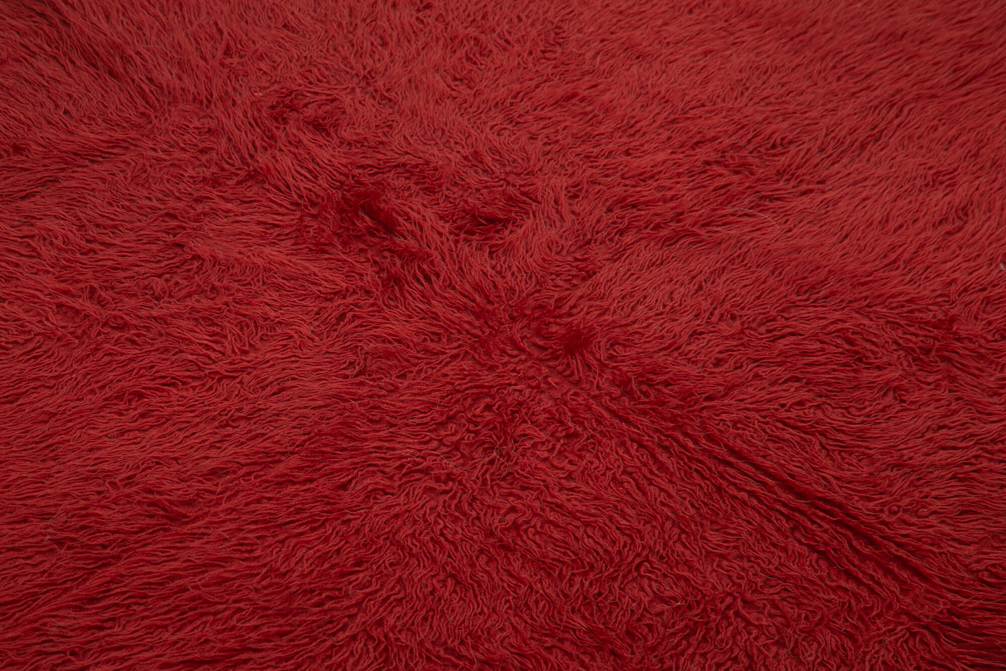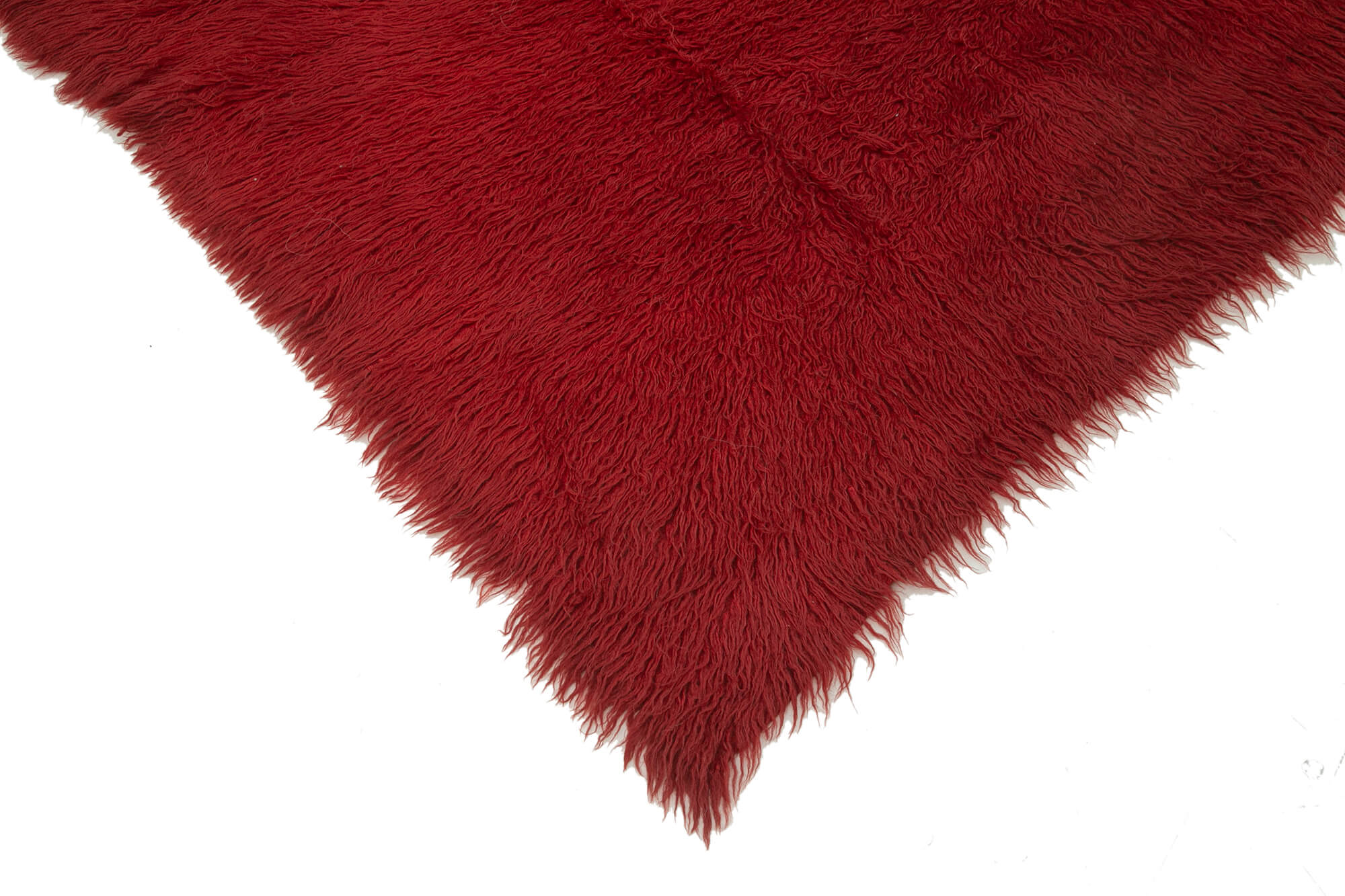 Tulu Red Shaggy Cotton Wool Handmade Area Rug 6'7'' x 7'10''