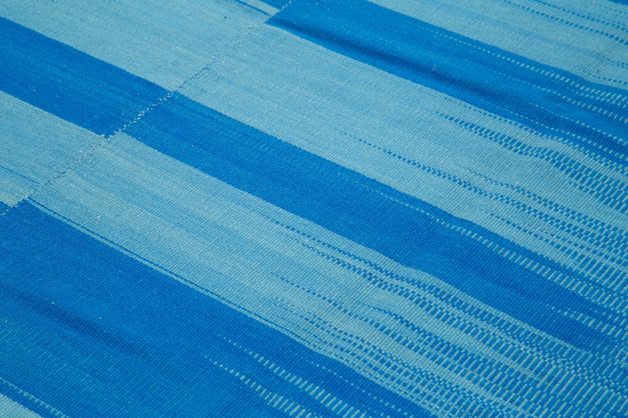 Degrade Kilim Blue Striped Cotton Wool Handmade Area Rug 9'11'' x 12'10''