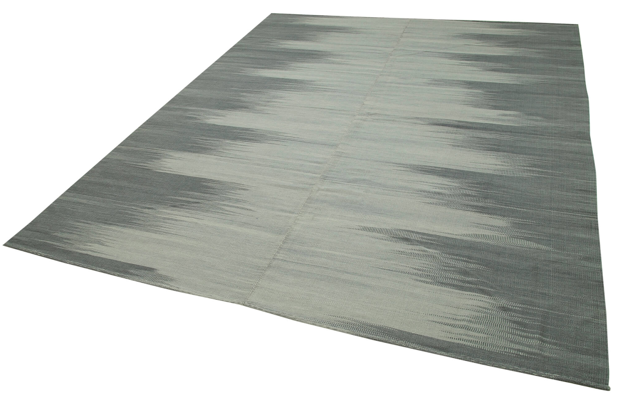 Degrade Kilim Grey Striped Cotton Wool Handmade Area Rug 9'10'' x 12'8''