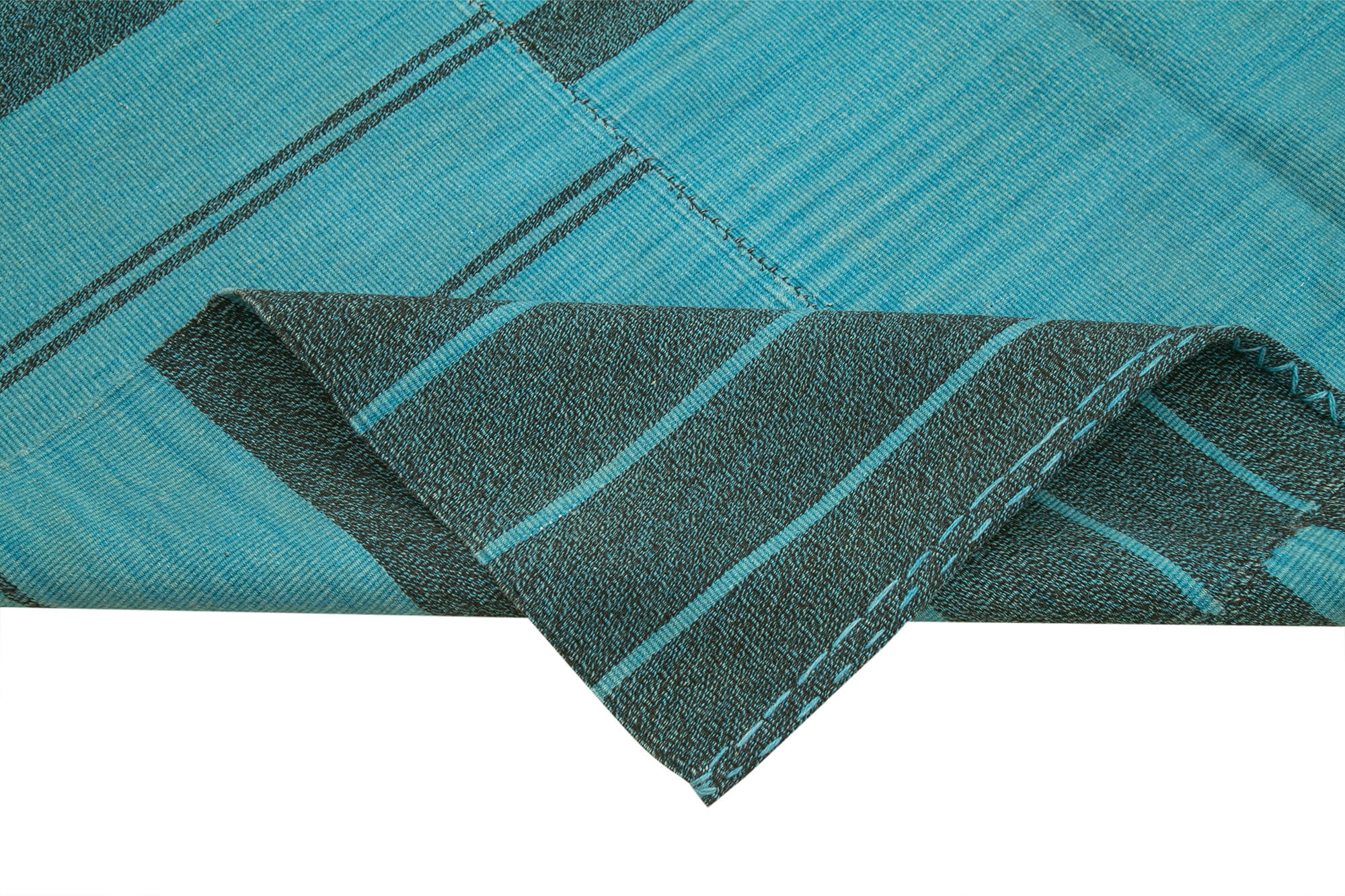 Degrade Kilim Turquoise Striped Cotton Wool Handmade Area Rug 6'9'' x 11'7''