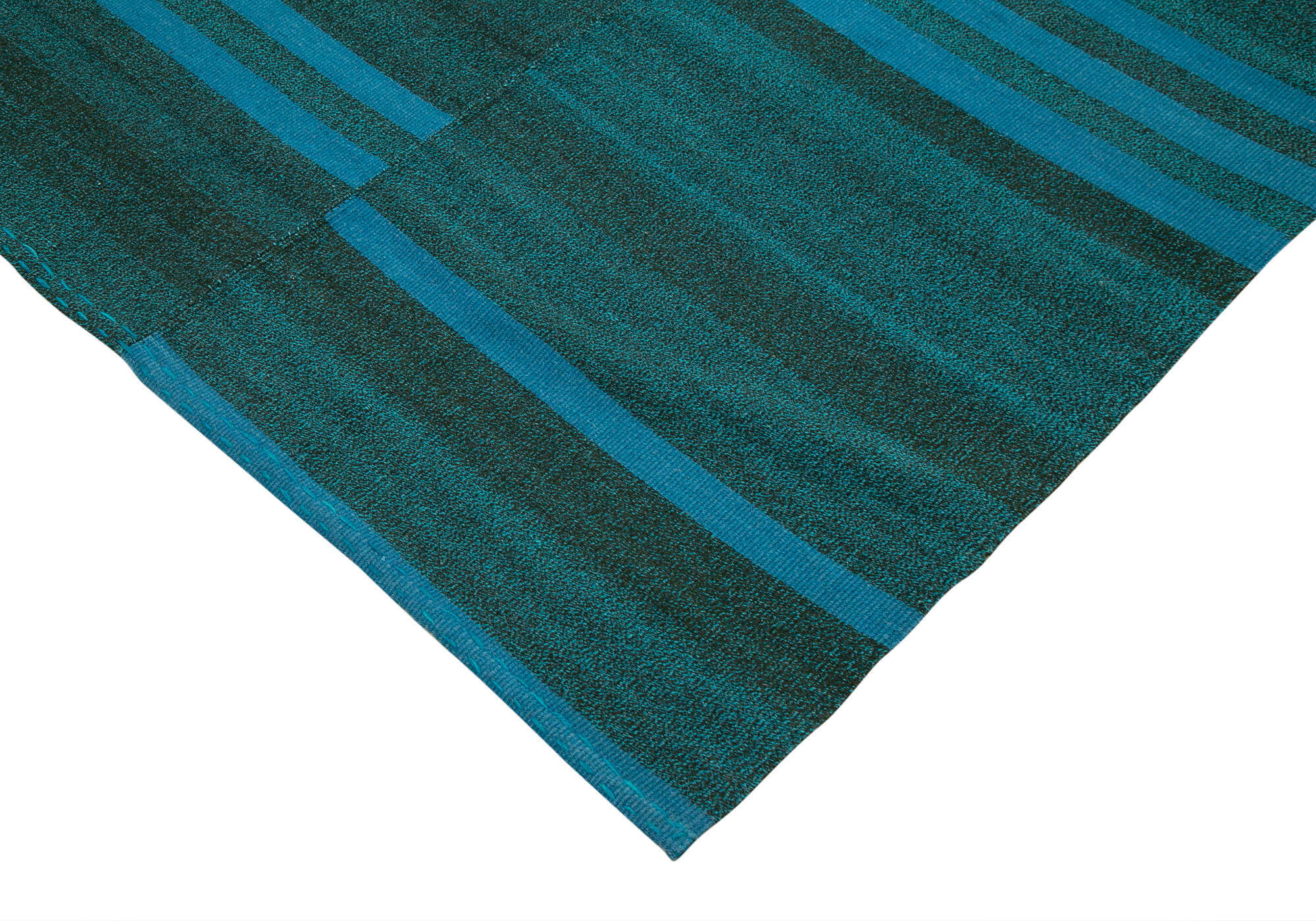 Degrade Kilim Turquoise Striped Cotton Wool Handmade Area Rug 9'6'' x 11'7''