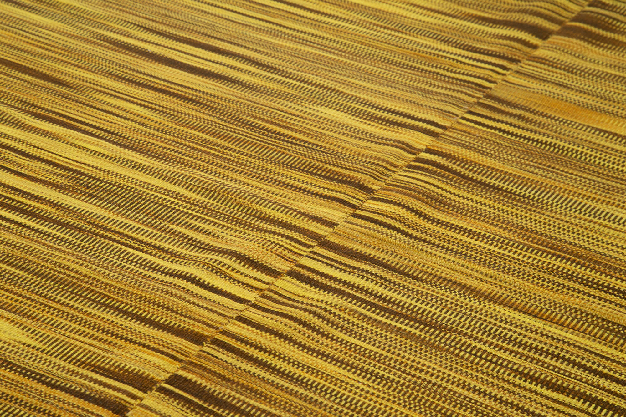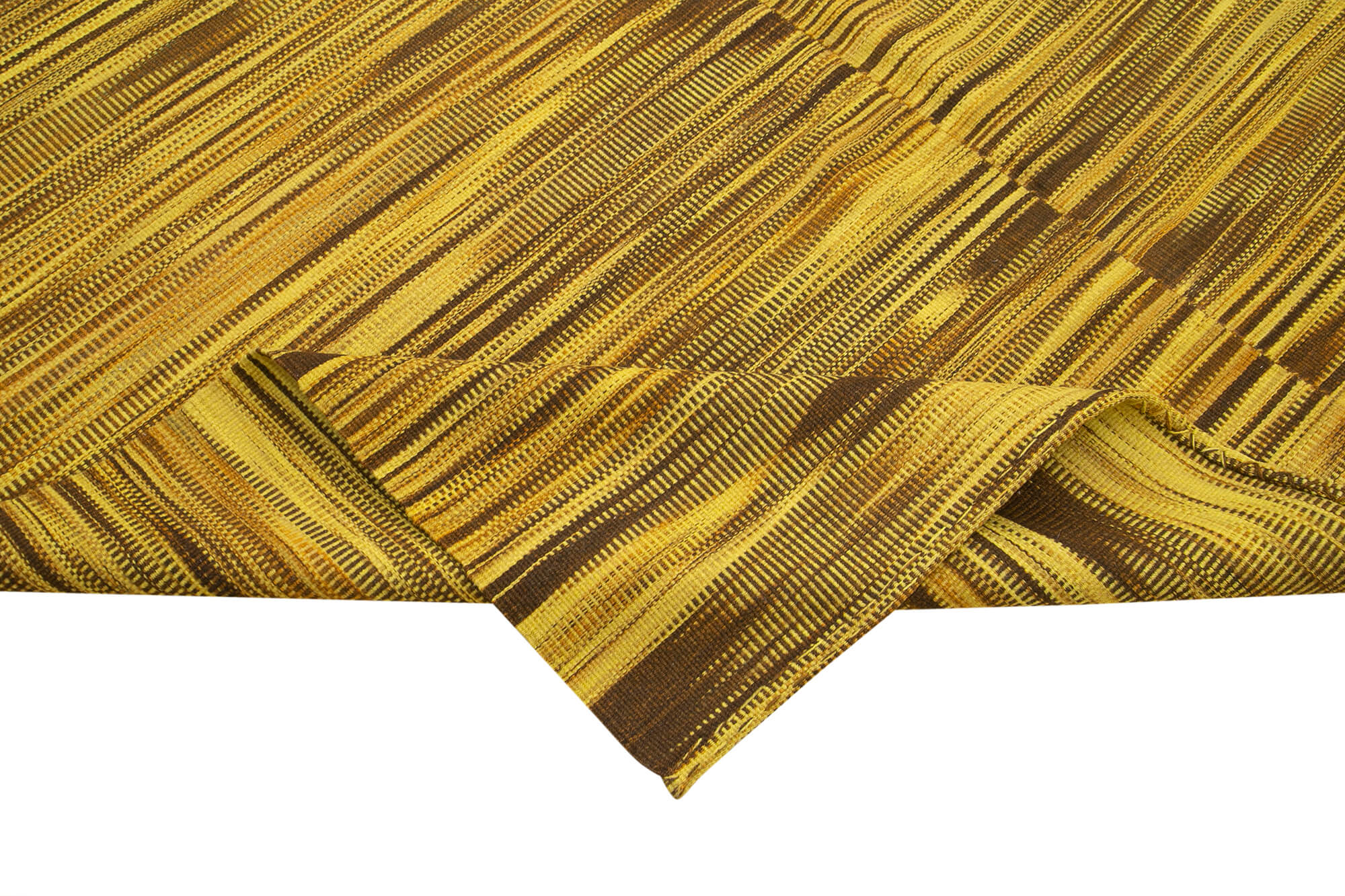 Degrade Kilim Yellow Striped Cotton Wool Handmade Area Rug 6'11'' x 12'1''