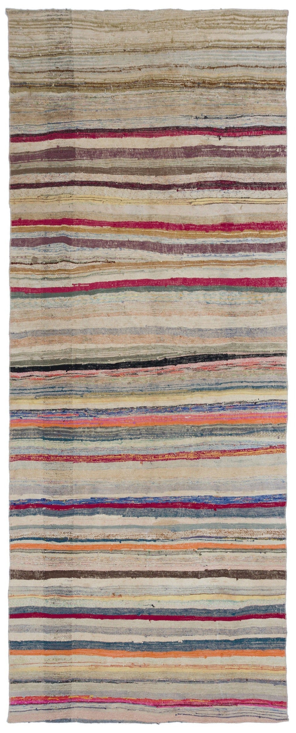 Girit Beige Striped Wool Handmade Area Rug 5'4" x 13'6"