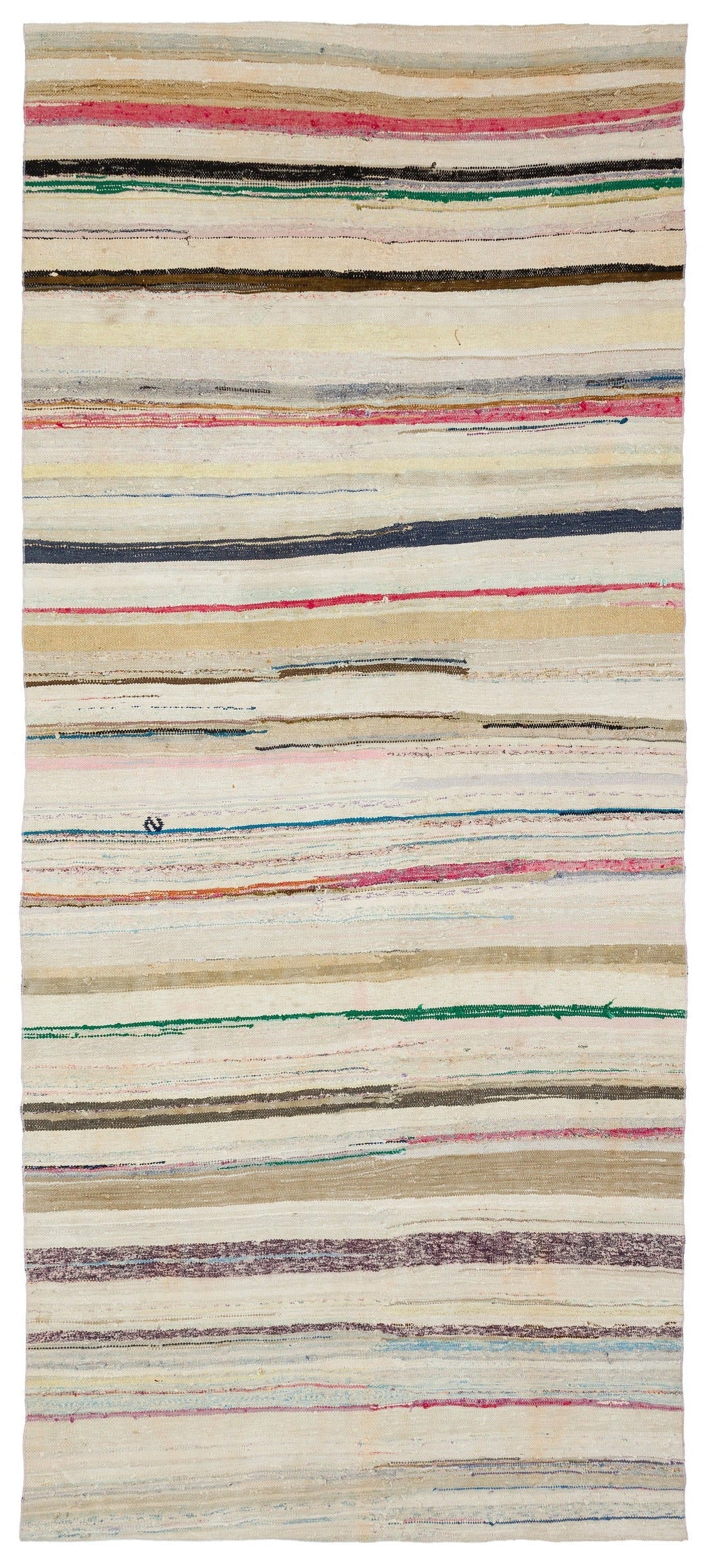Girit Beige Striped Wool Handmade Area Rug 5'5" x 12'4"