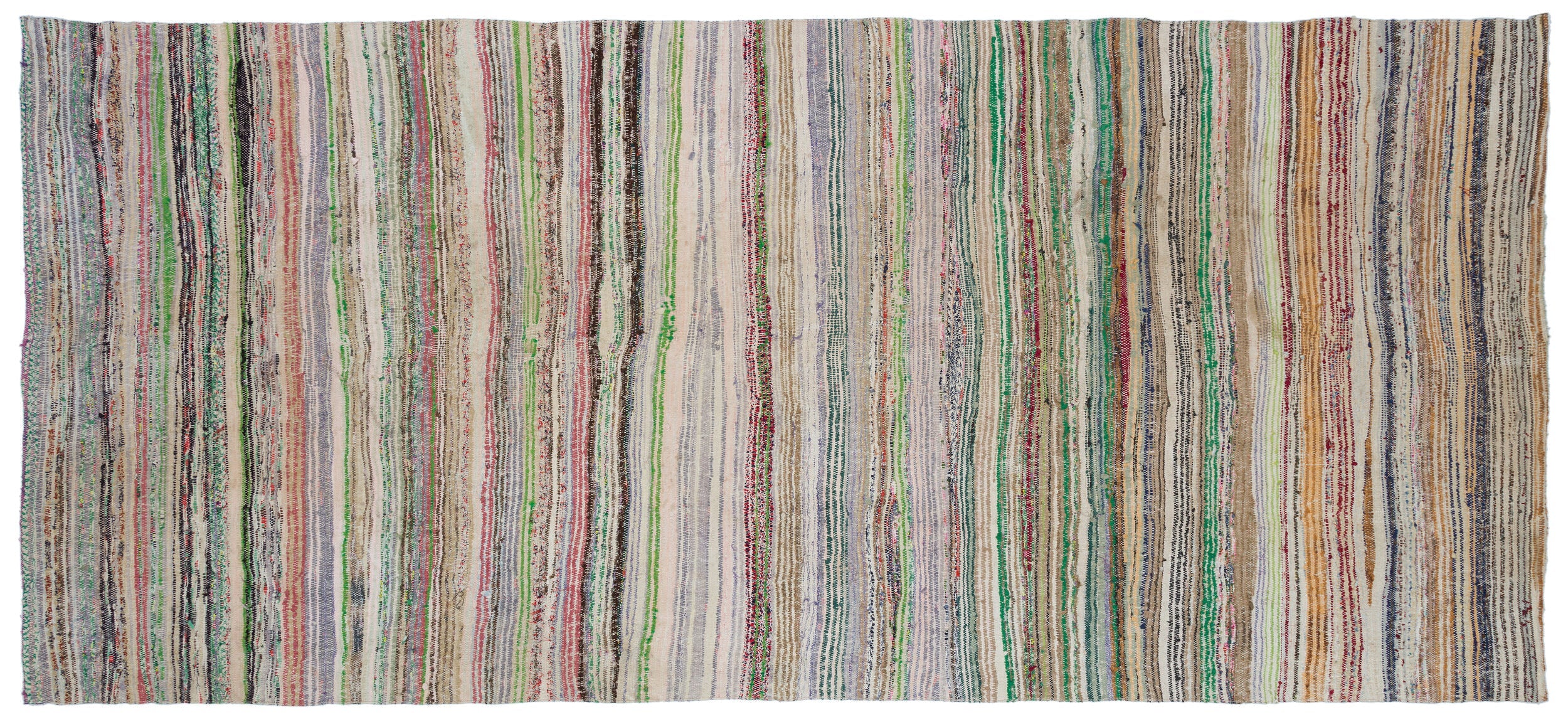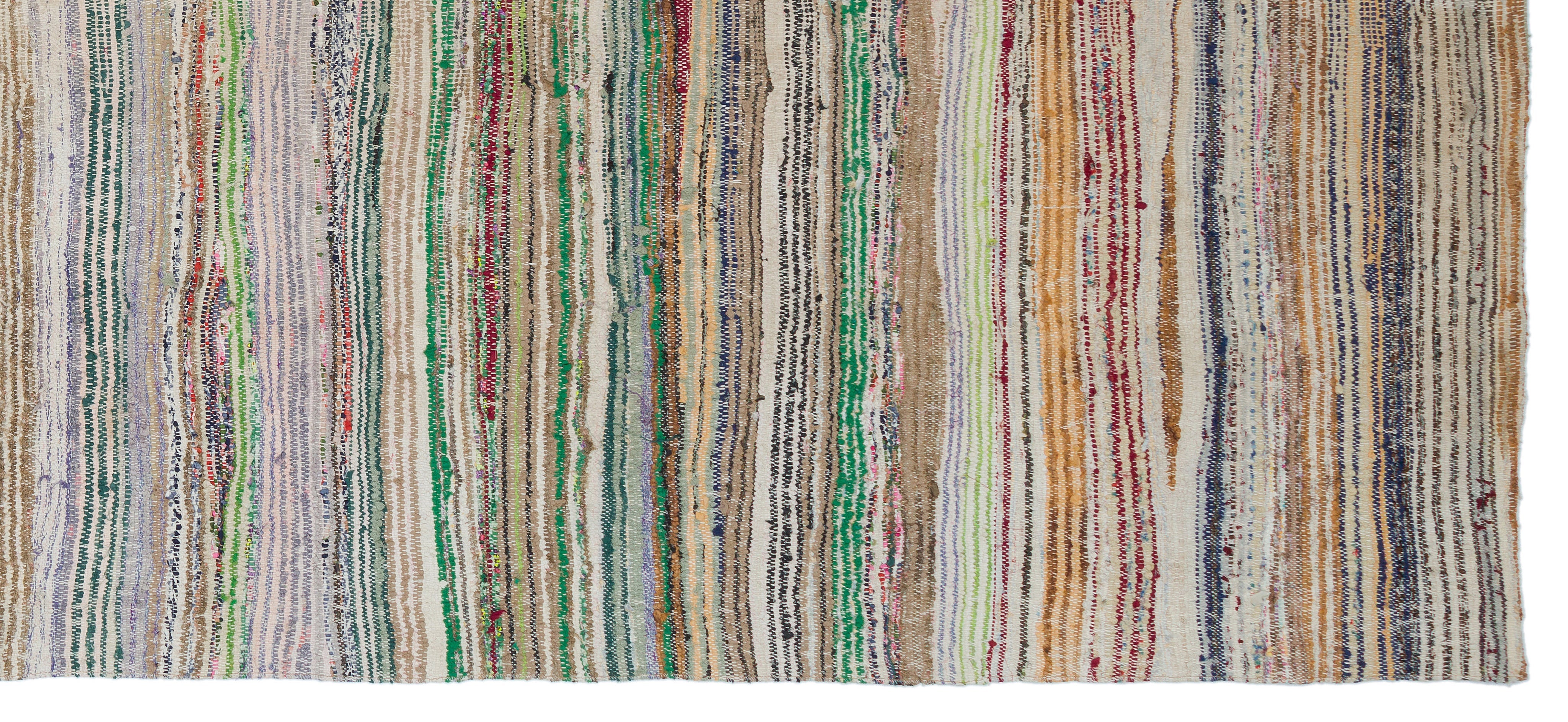 Girit Beige Striped Wool Handmade Area Rug 5'5" x 12'7"