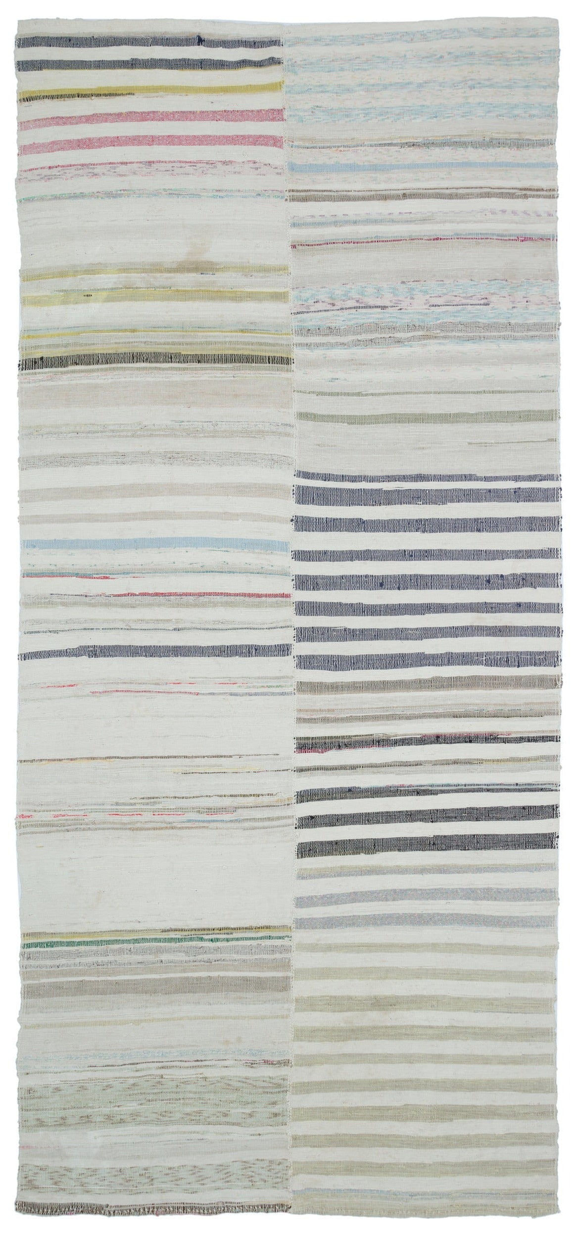 Girit Beige Striped Wool Handmade Area Rug 5'9" x 12'8"