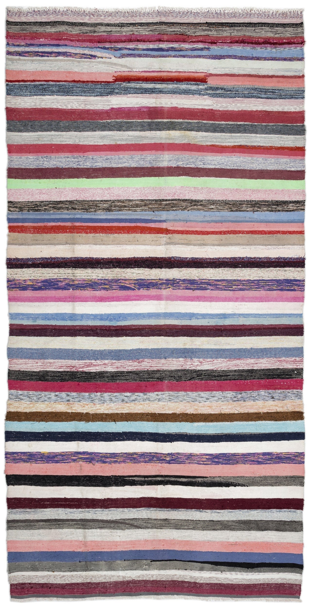 Girit Beige Striped Wool Handmade Area Rug 5'10" x 11'10"