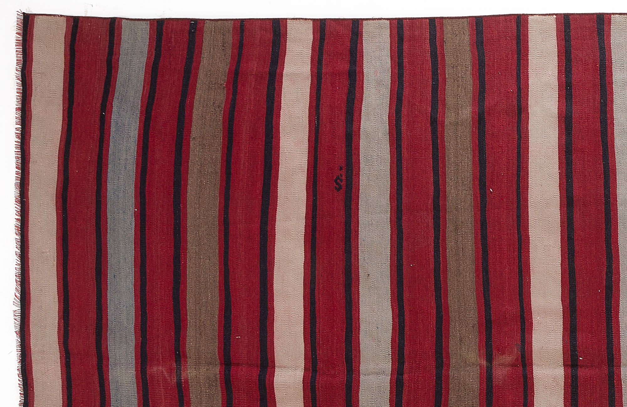 Girit Beige Striped Wool Handmade Area Rug 5'11" x 10'11"