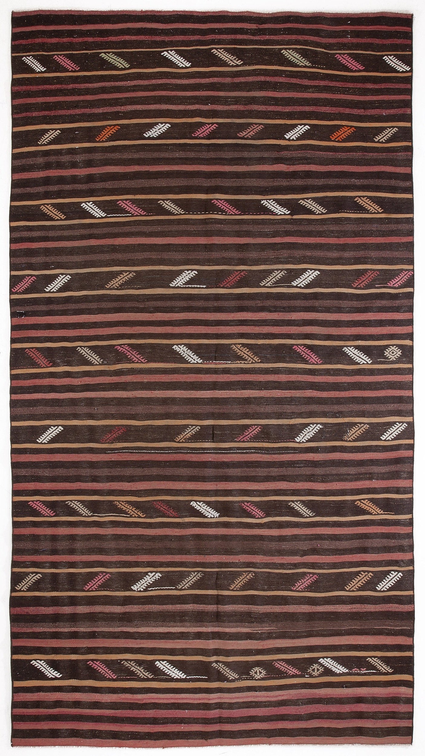 Girit Beige Striped Wool Handmade Area Rug 5'11" x 11'0"