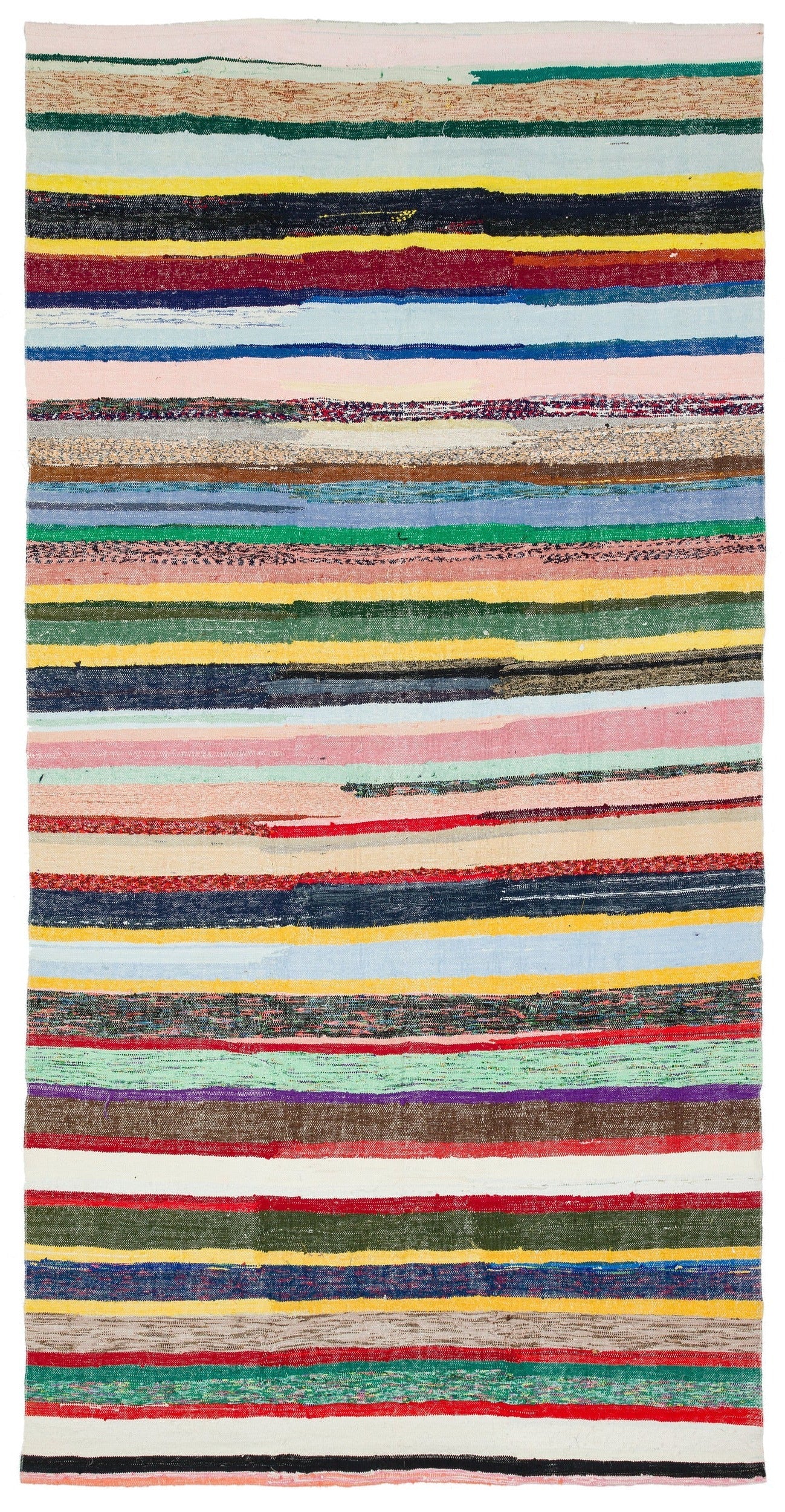 Girit Beige Striped Wool Handmade Area Rug 5'11" x 11'4"