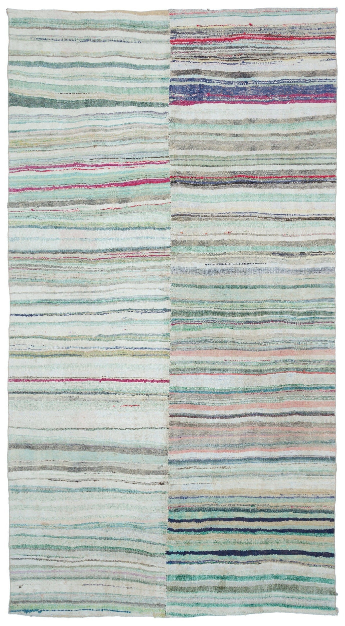 Girit Beige Striped Wool Handmade Area Rug 6'2" x 11'3"