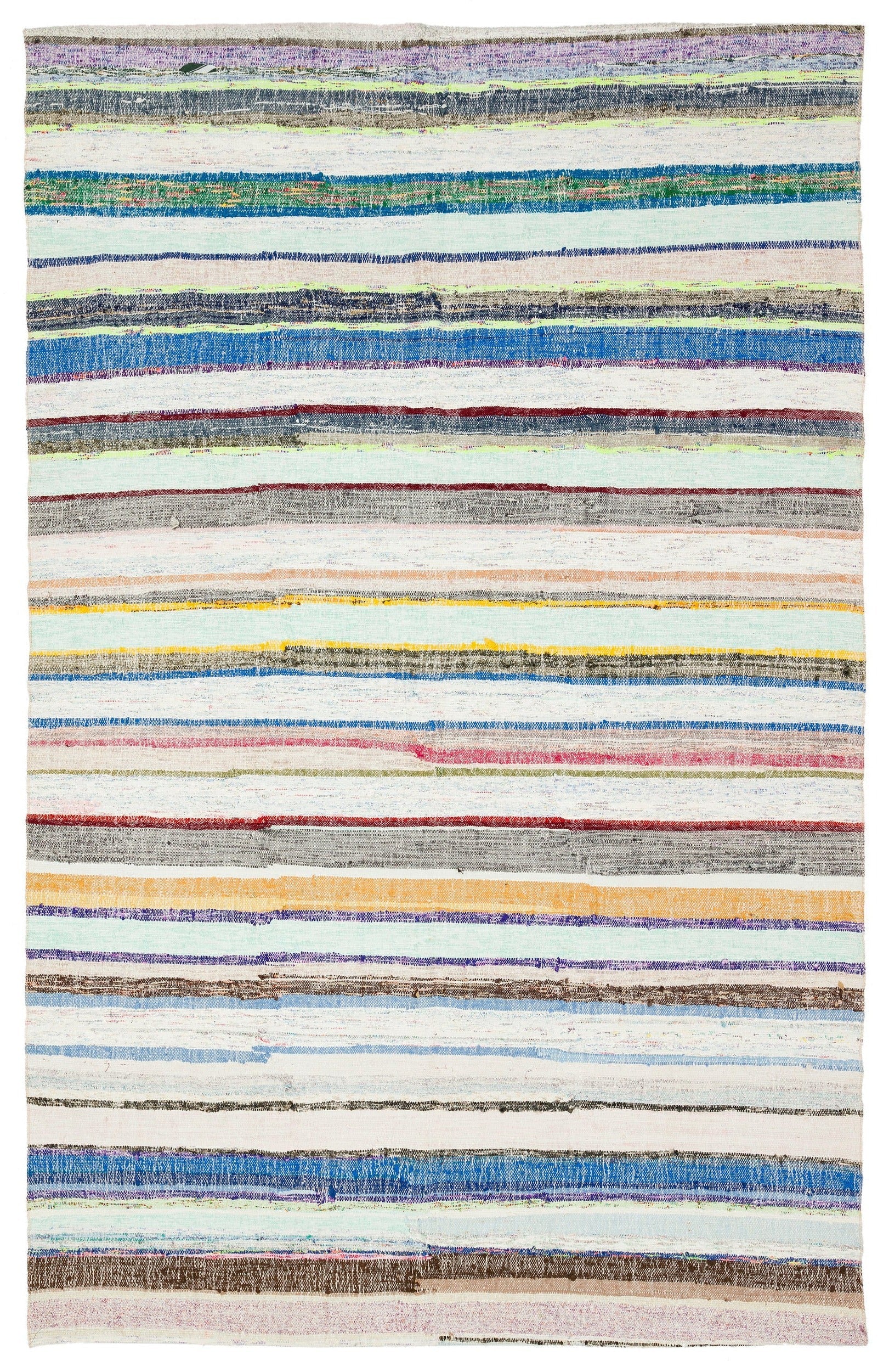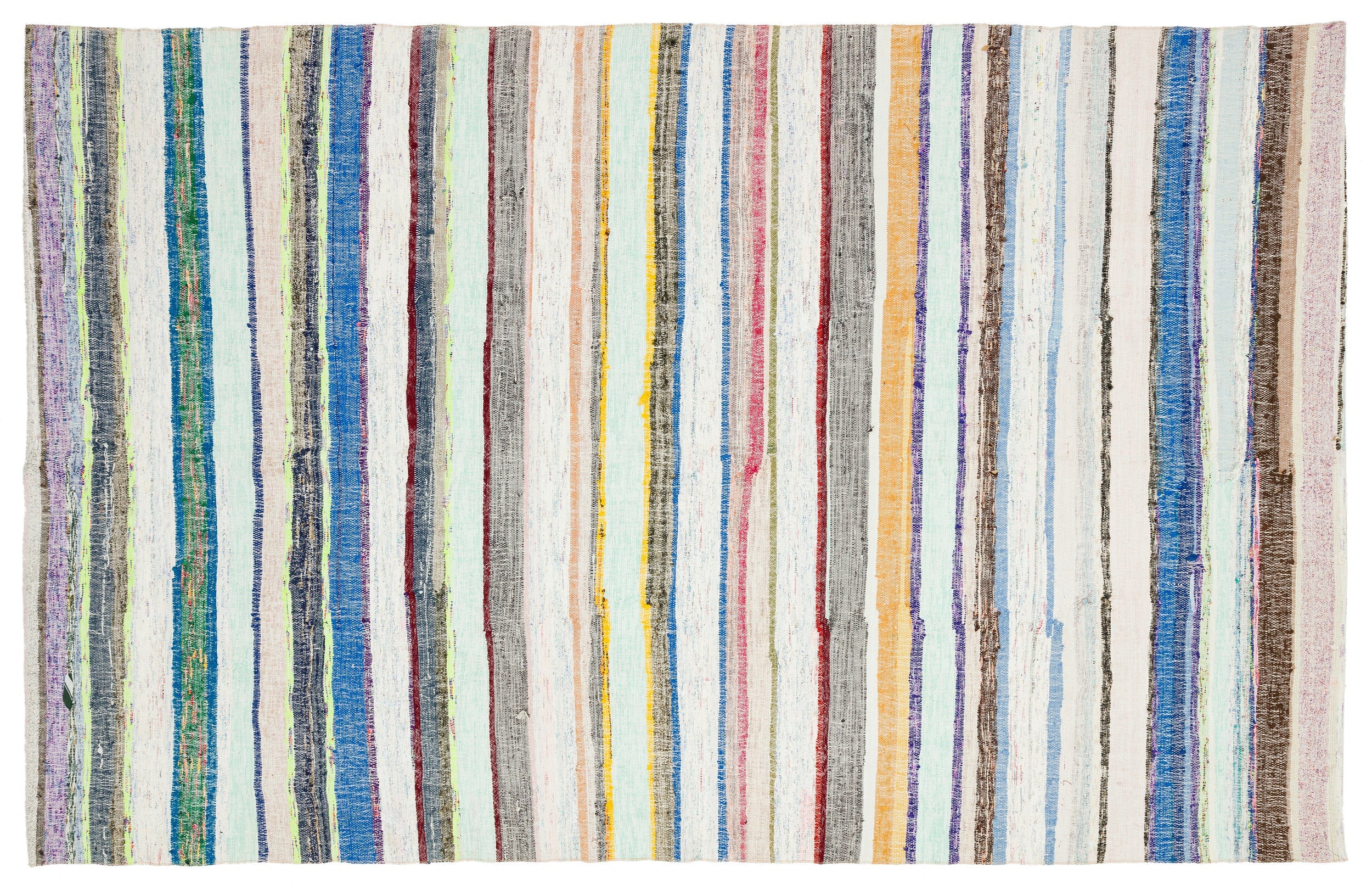 Girit Beige Striped Wool Handmade Area Rug 6'5" x 10'1"