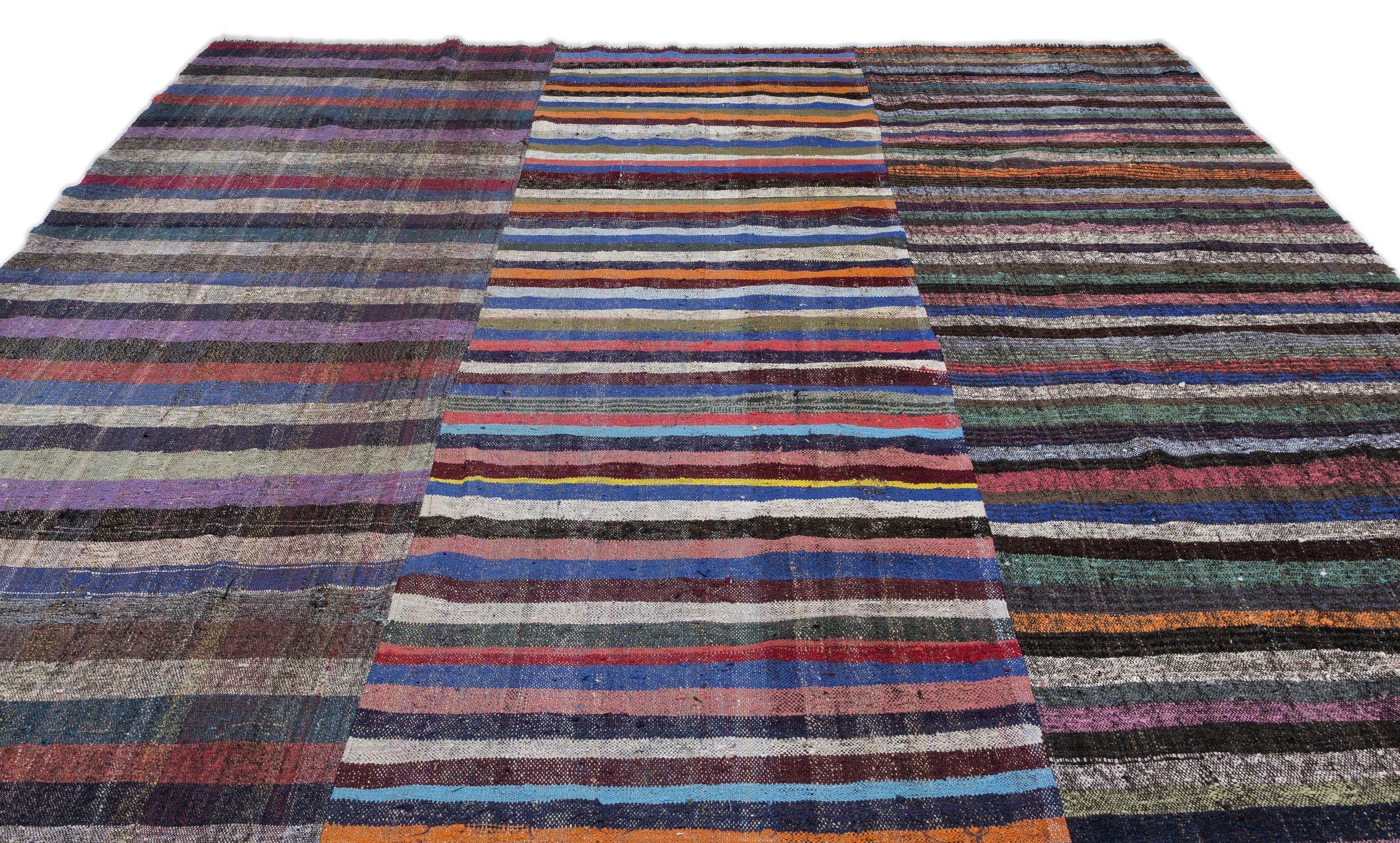 Girit Beige Striped Wool Handmade Area Rug 9'11" x 11'5"