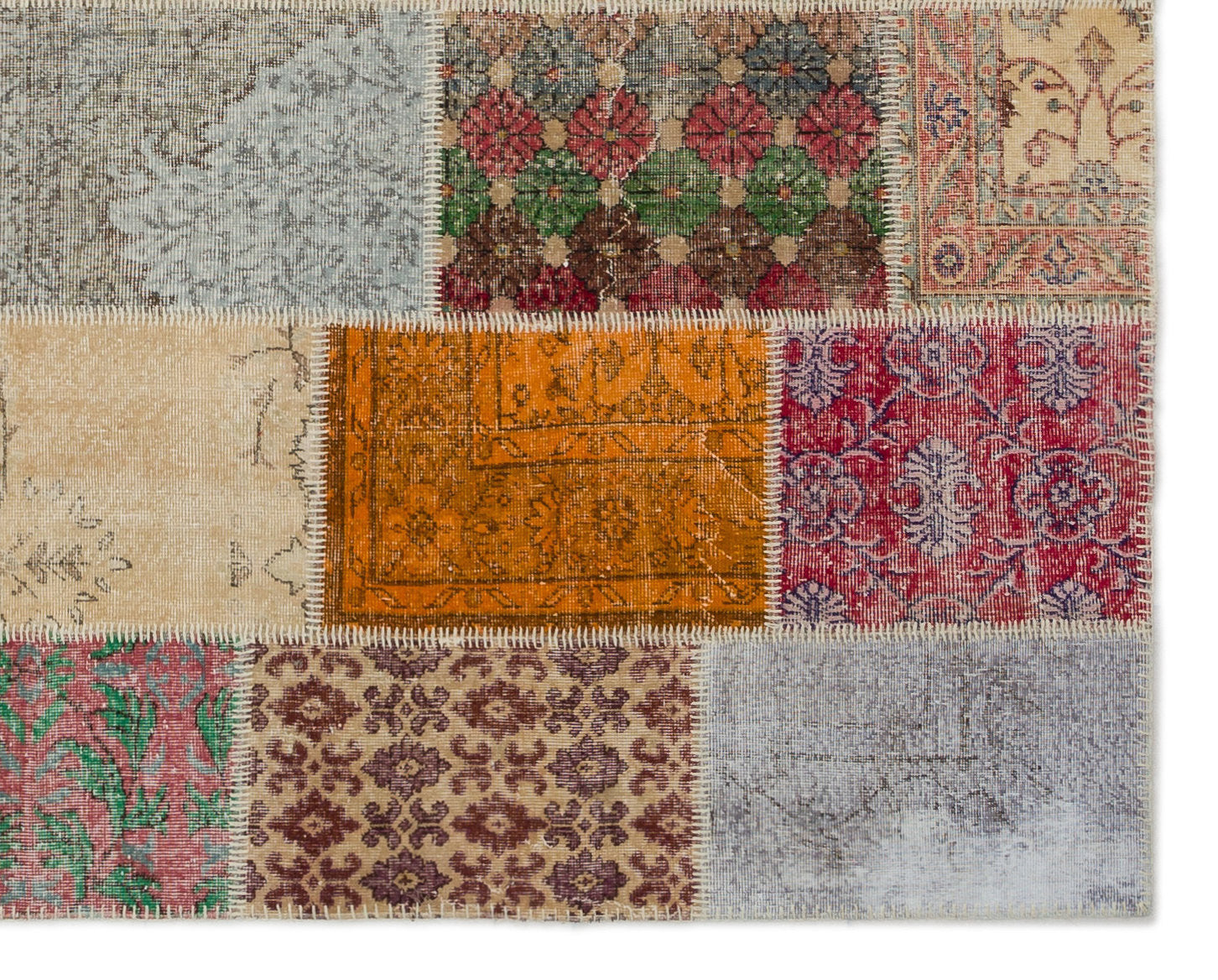 Iskece 20348 Beige Patchwork Wool Handmade Area Rug 8'1" x 10'1"