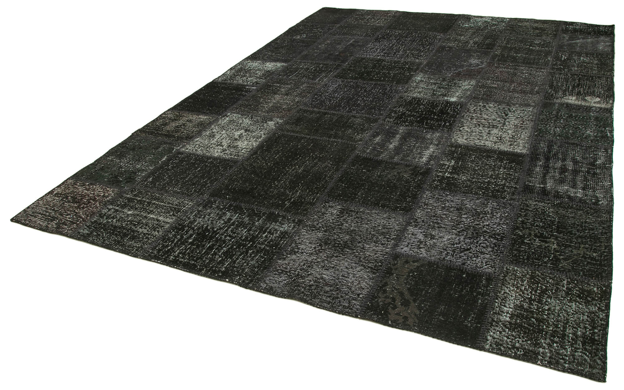 Kirk Yama Black Patchwork Cotton Wool Handmade Area Rug 8'2'' x 11'7''