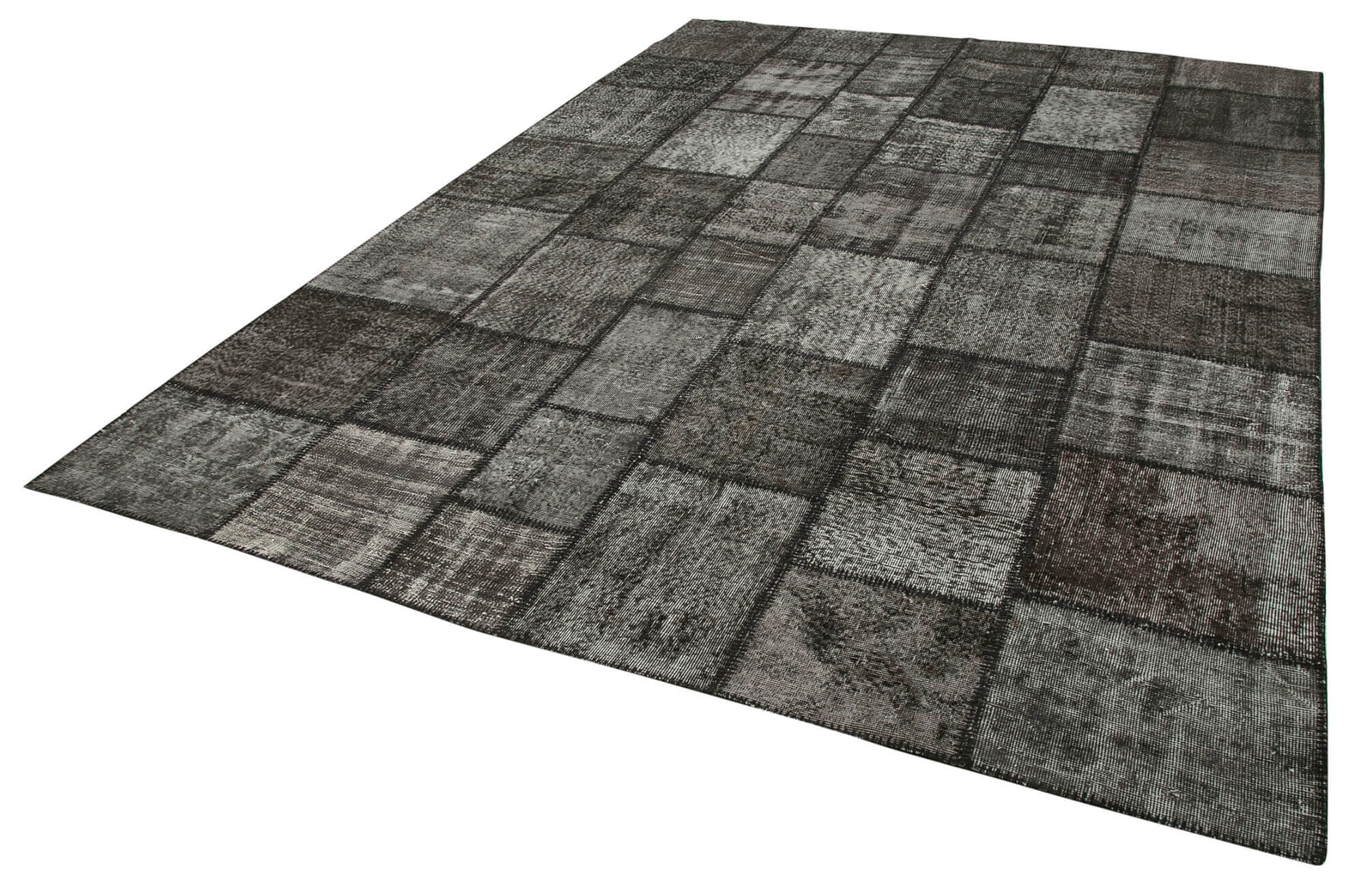 Kirk Yama Black Patchwork Cotton Wool Handmade Area Rug 8'4'' x 11'7''
