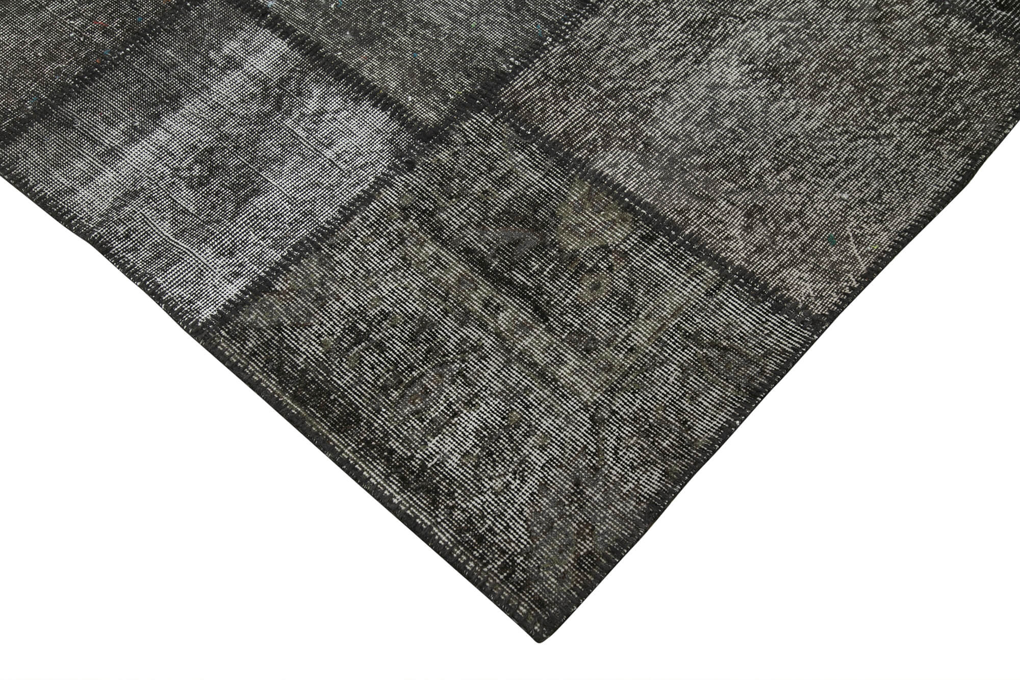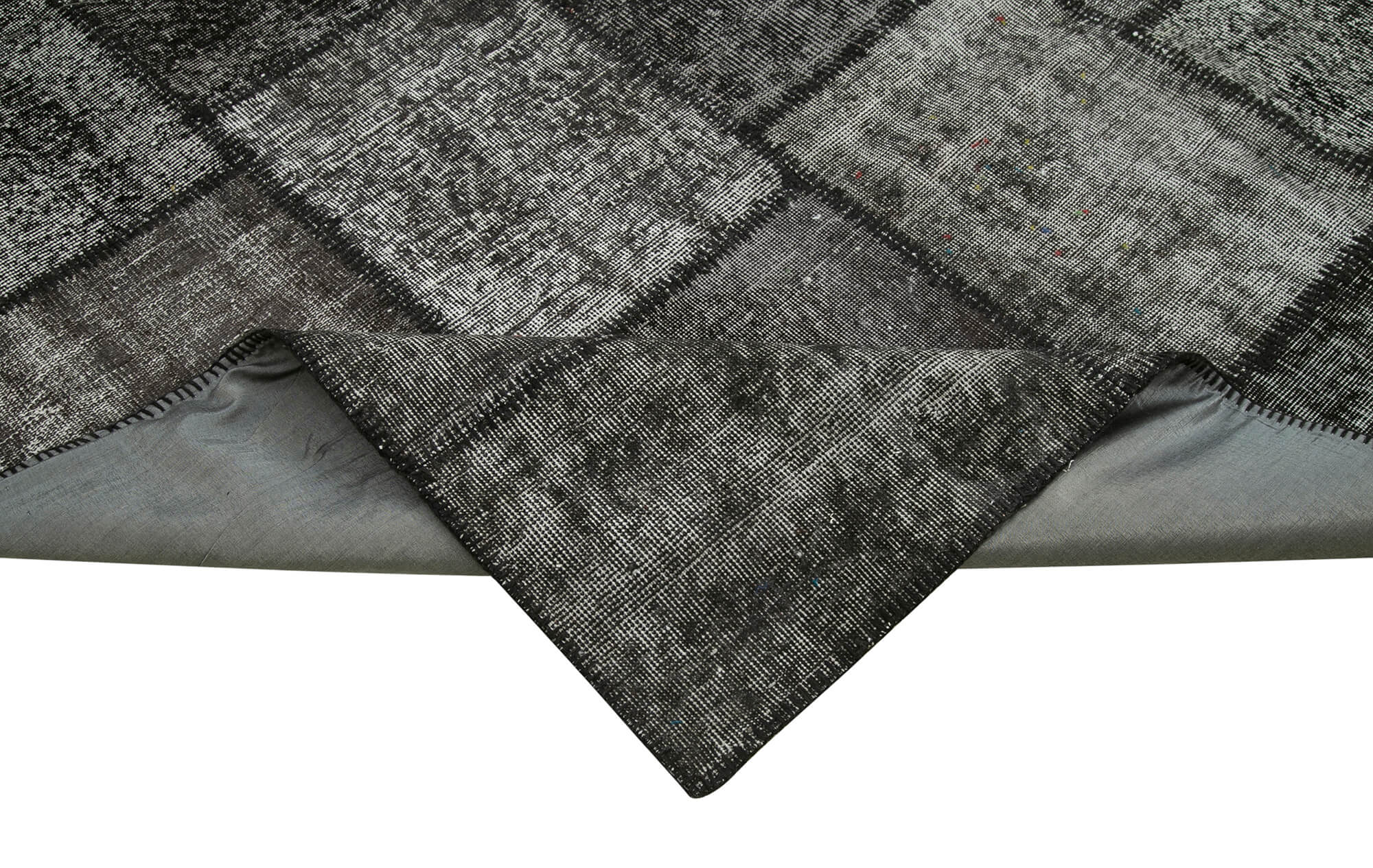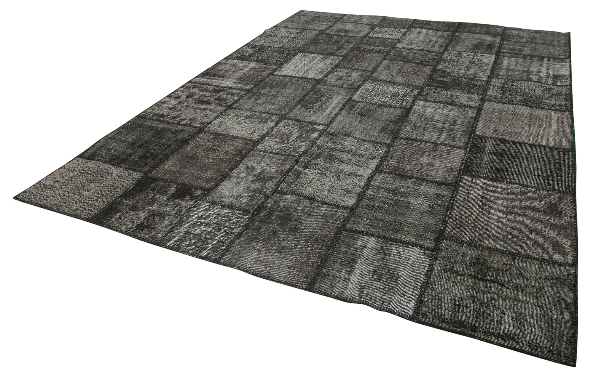 Handmade Area Rug - Black Patchwork Cotton Wool Vintage Turkish Carpet 8'5''x11'7''