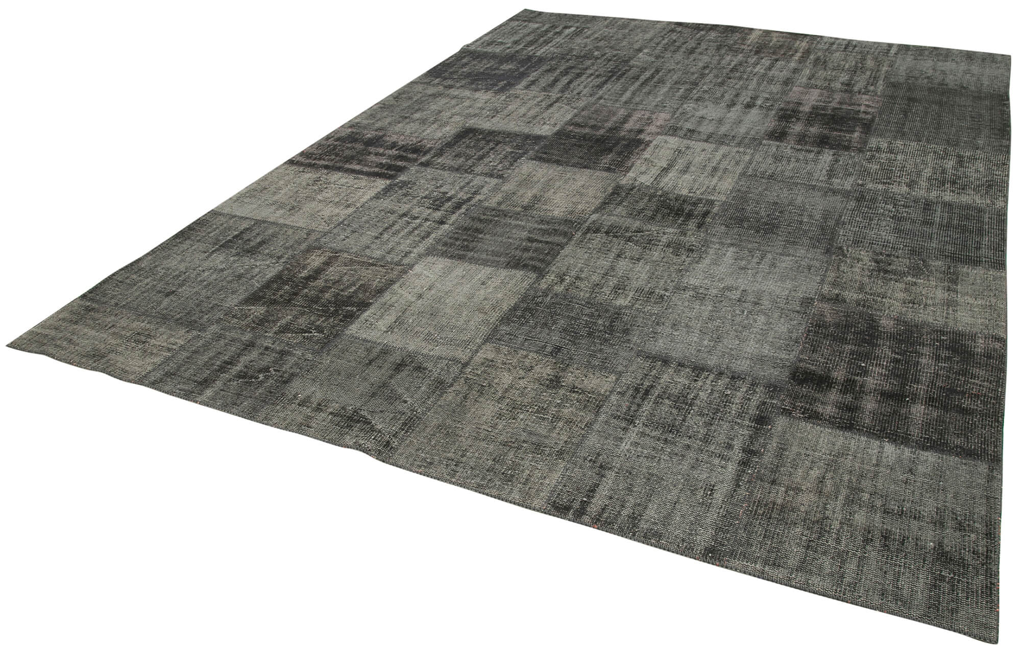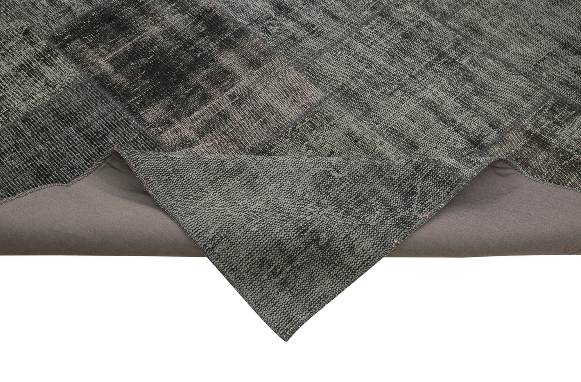 This handmade area rug is a Turkish patchwork black wool cotton carpet measuring 8'5" x 11'7", designed to bring timeless style and durability to your living space. Crafted using traditional hand knotted techniques, this hand woven rug combines natural wool and soft cotton fibers to create a vintage wool rug that is both durable and comfortable underfoot. The black patchwork carpet features a unique blend of colors achieved through special washing methods that neutralize and subtly alter the original shades, ensuring each piece is one of a kind. Perfect as a living room rug or bohemian style rug, this natural fiber rug offers lasting quality backed by years of expert craftsmanship.