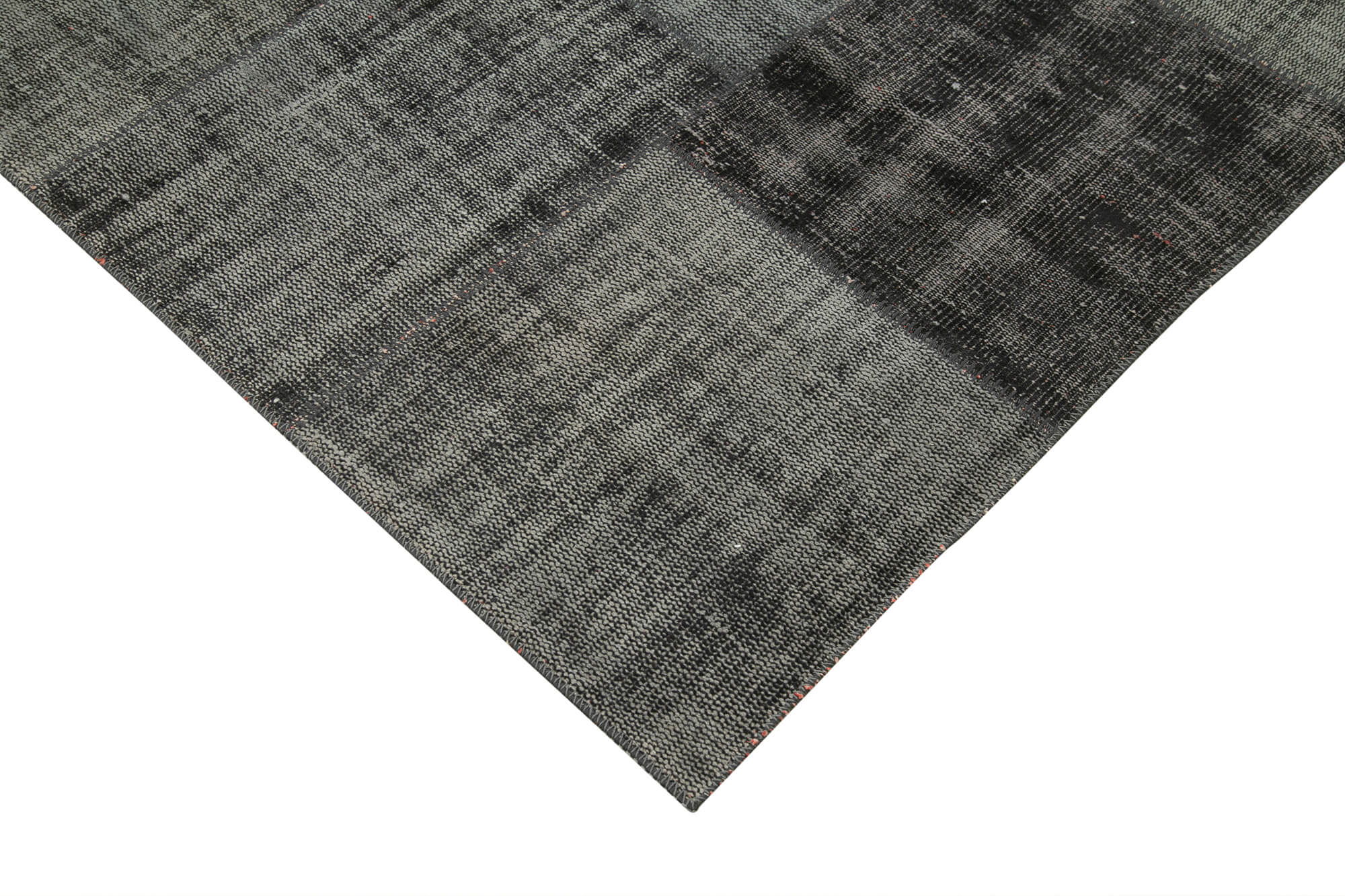 Handmade Area Rug | Turkish Patchwork Black Wool Cotton Carpet 8'5" x 11'7"
