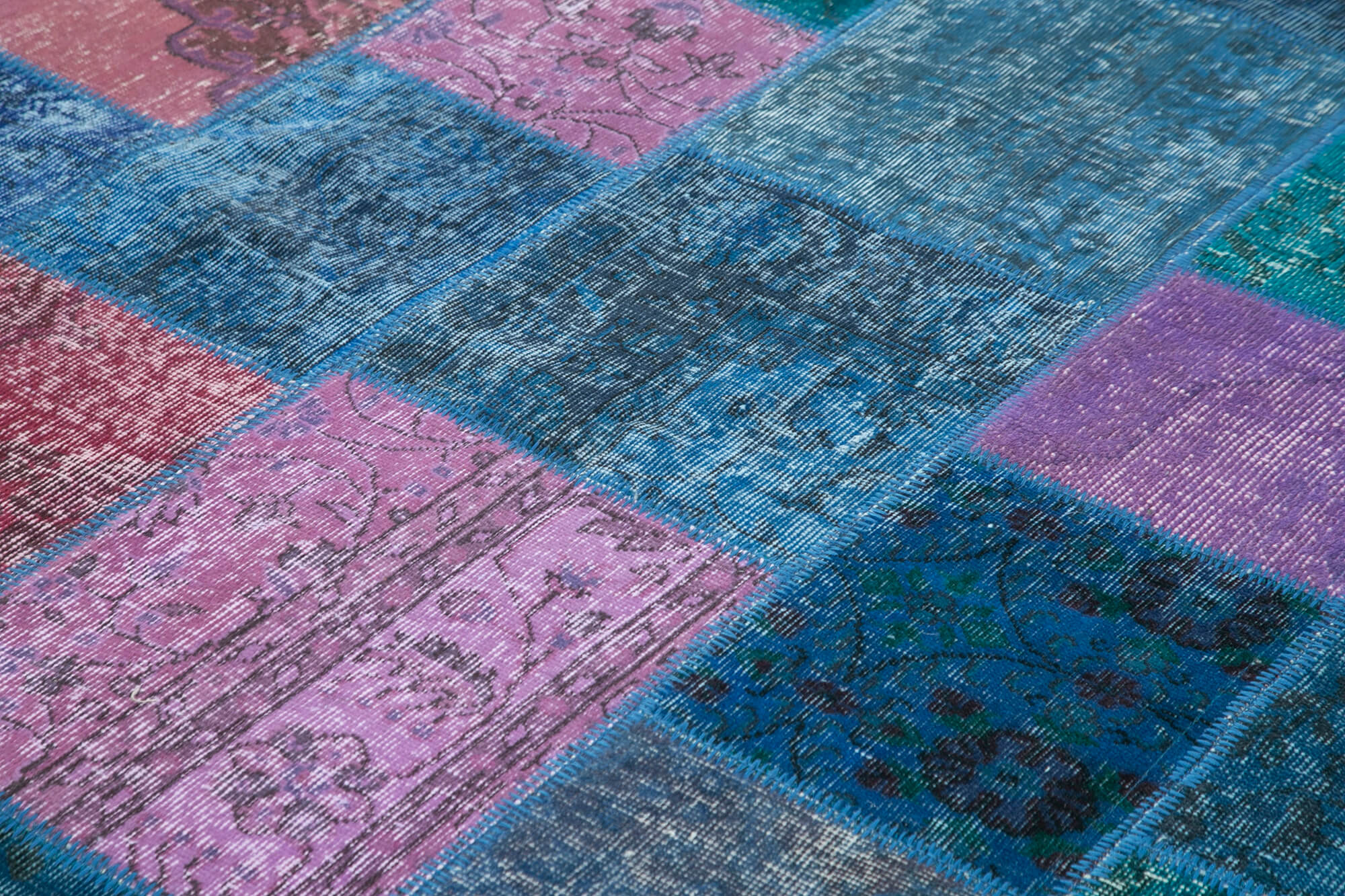 Upgrade your space with this blue patchwork rug that blends artistry and function seamlessly. Whether placed in a high-traffic area or used as a decorative accent, this cotton wool carpet stands up to daily use while adding warmth and style. Its durable woven carpet structure resists wear, making it perfect for families or pet owners seeking beauty without compromise.
