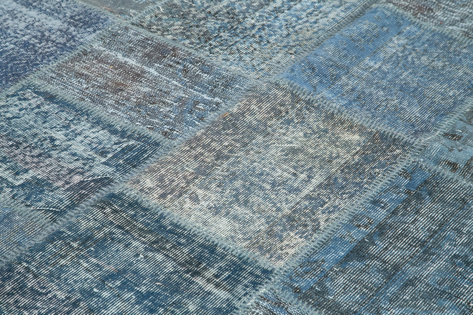 Handmade Area Rug – Blue Patchwork Turkish Wool & Cotton Carpet 7'9''x11'7''