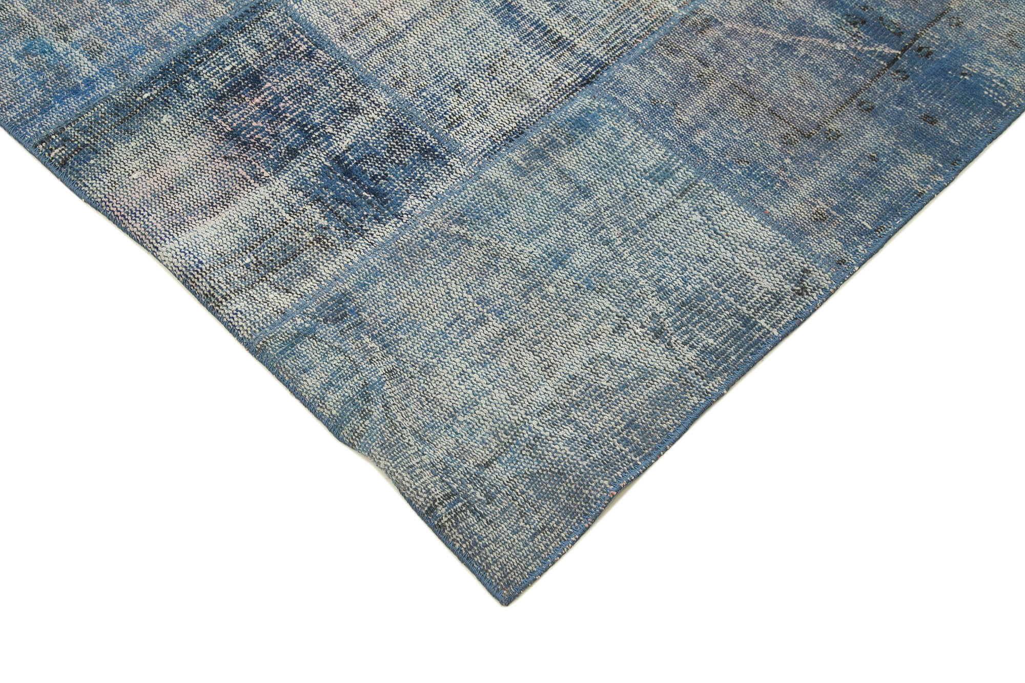 - Blue patchwork rug design for a distinctive vintage look