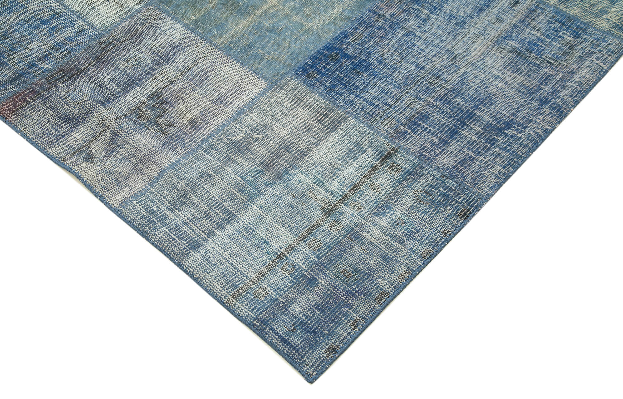 Handmade Area Rug - Blue Patchwork Cotton Wool Carpet, Vintage Turkish Style 8'2" x 11'4"