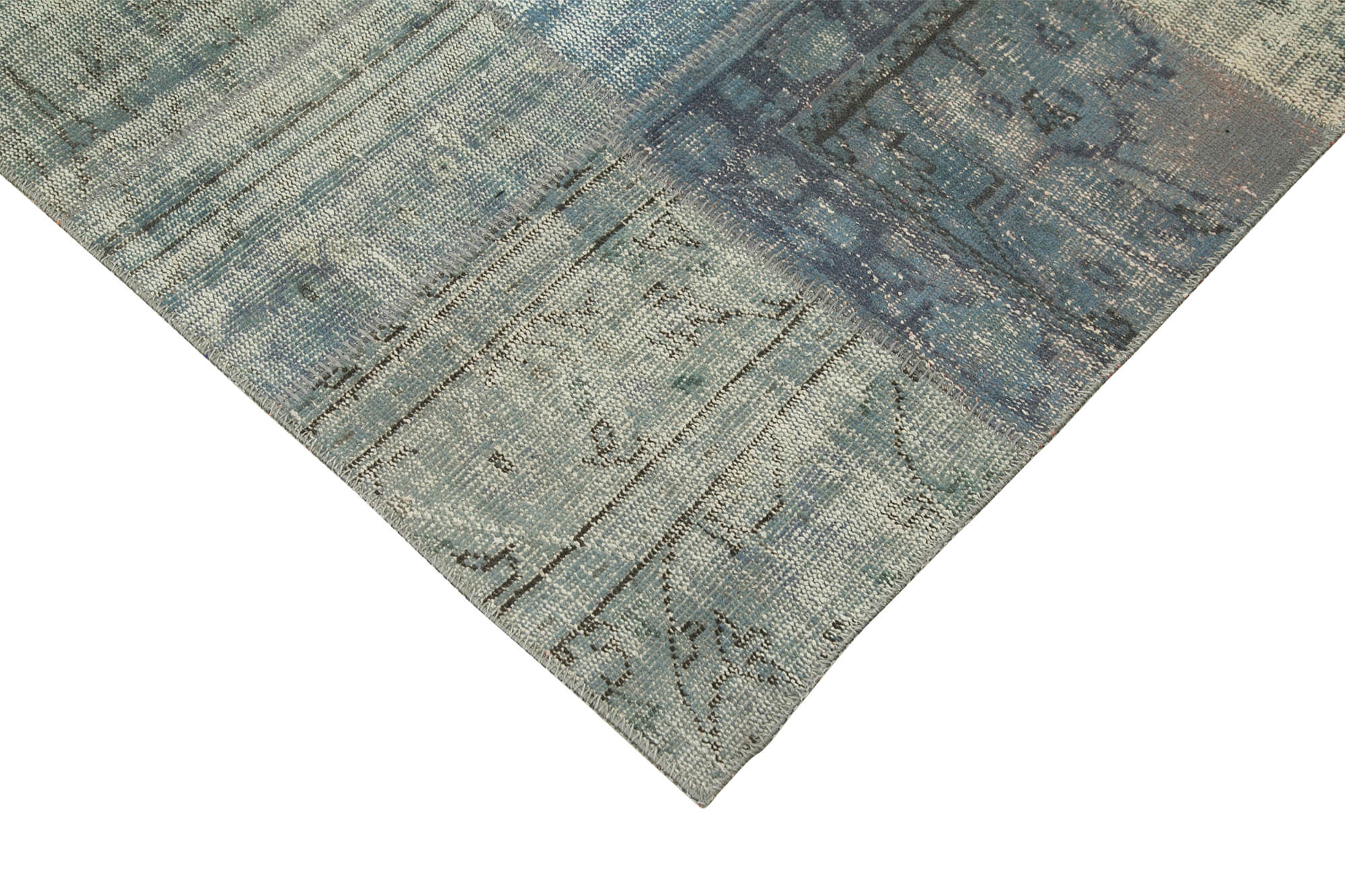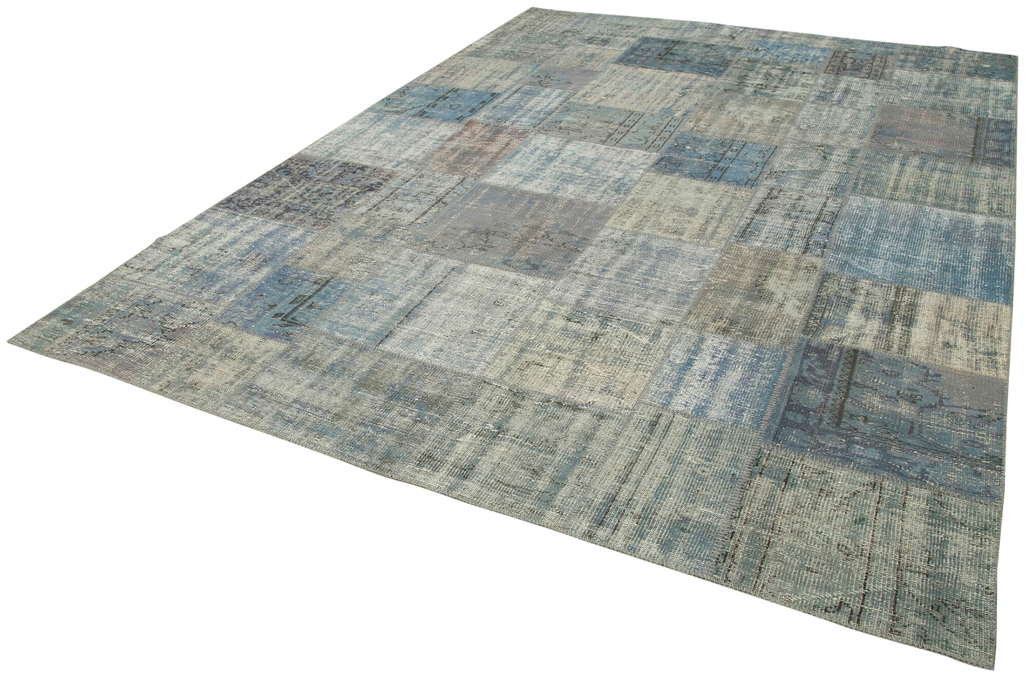 Handmade Area Rug - Blue Patchwork Cotton Wool Vintage Turkish Carpet 8'2''x11'6''