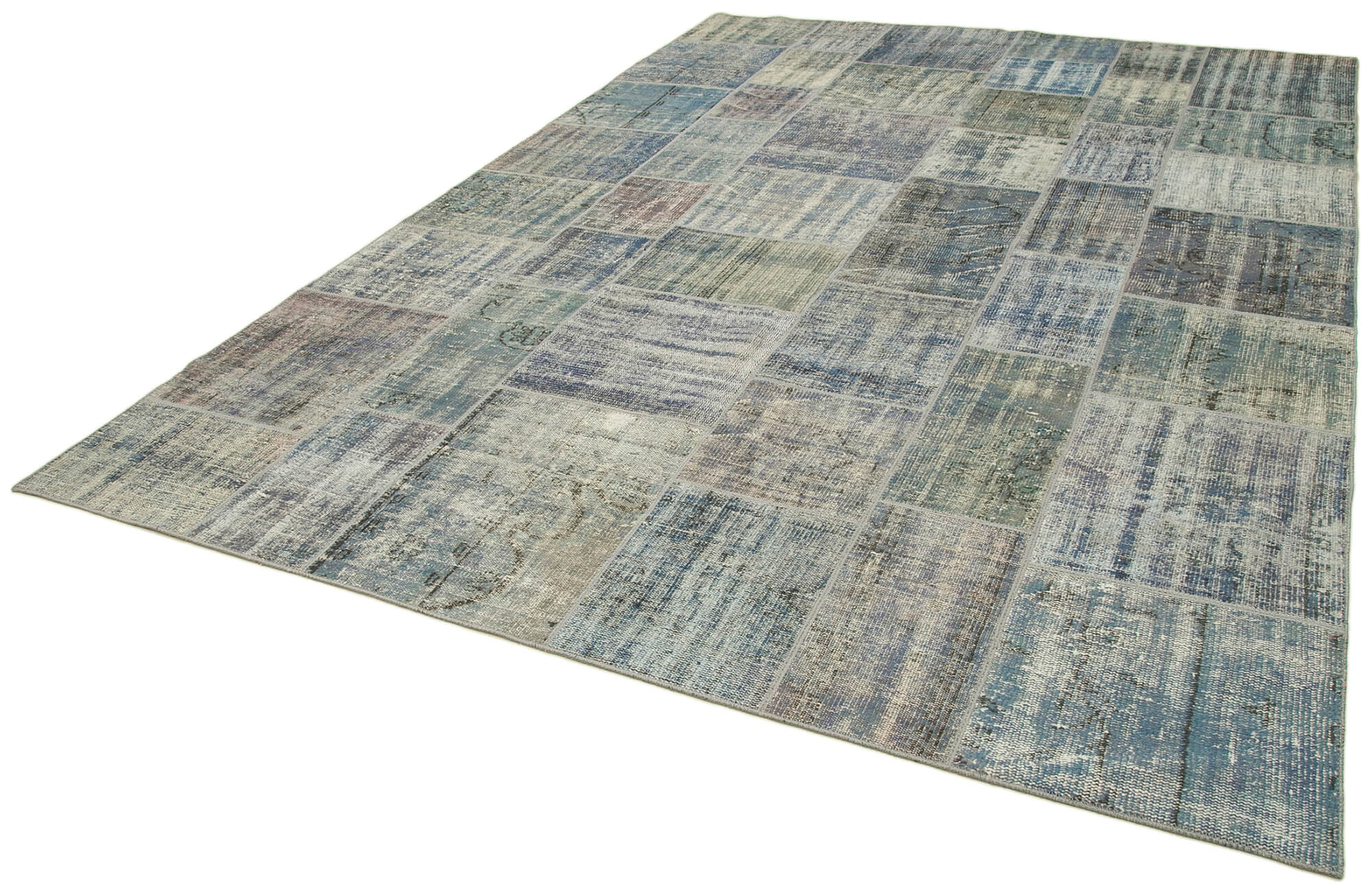 Kirk Yama Blue Patchwork Cotton Wool Handmade Area Rug 8'2'' x 11'9''
