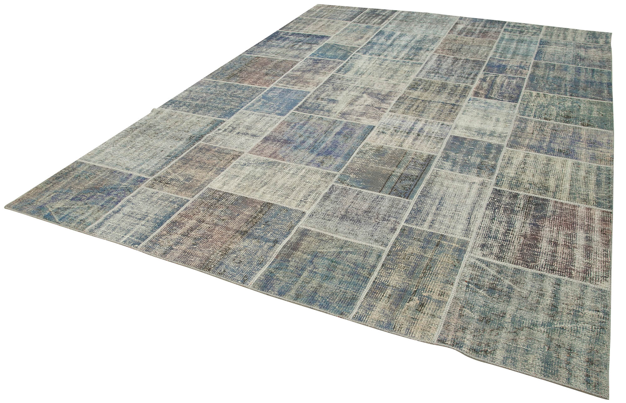 Handmade Area Rug - Blue Patchwork Wool Cotton Carpet 8'3''x11'8'' for Living Room
