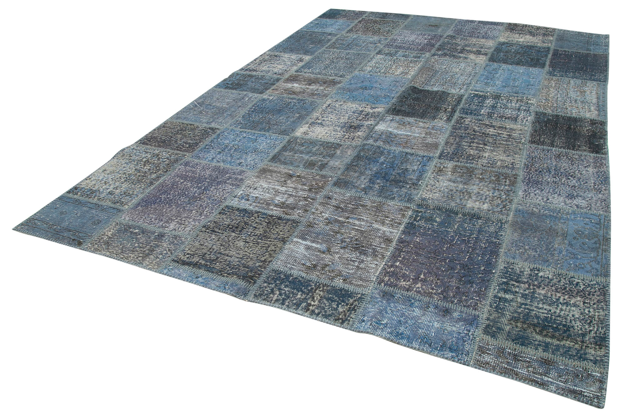 Kirk Yama Blue Patchwork Cotton Wool Handmade Area Rug 8'4'' x 11'7''