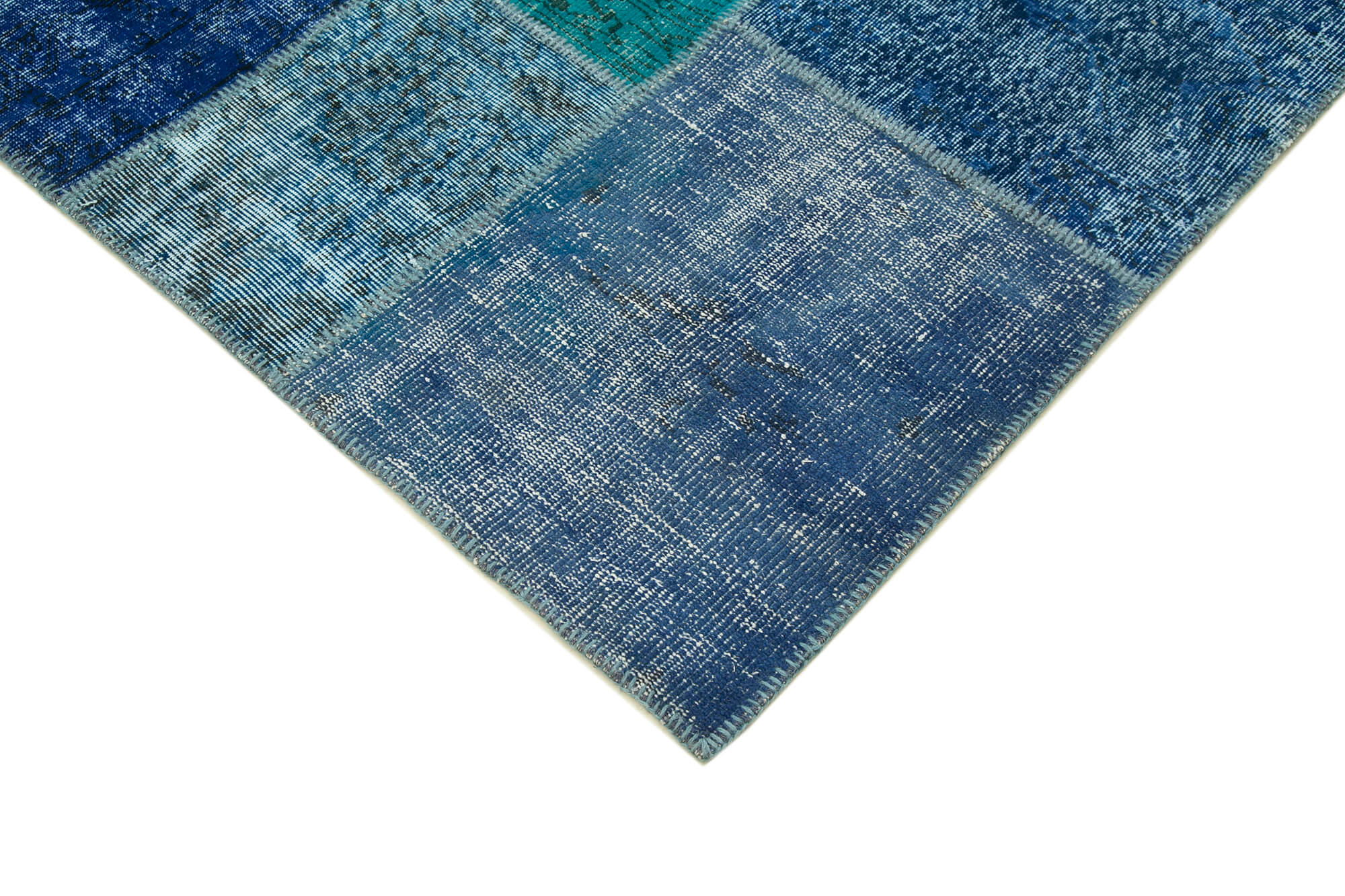 Handmade Area Rug - Blue Patchwork Cotton Wool Carpet 8'6''x11'8'' Durable Soft Wool