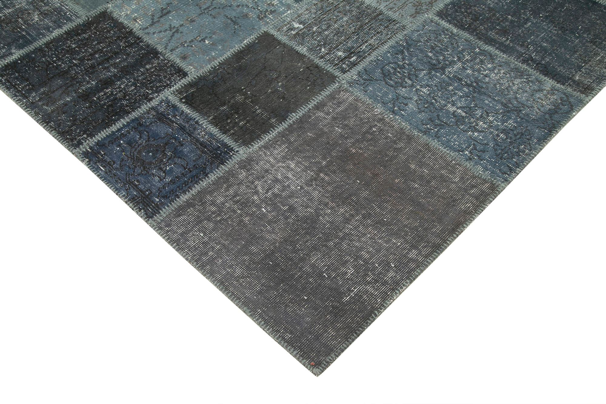 Handmade Area Rug - Kirk Yama Grey Patchwork Cotton Wool Carpet 6'9''x9'11''