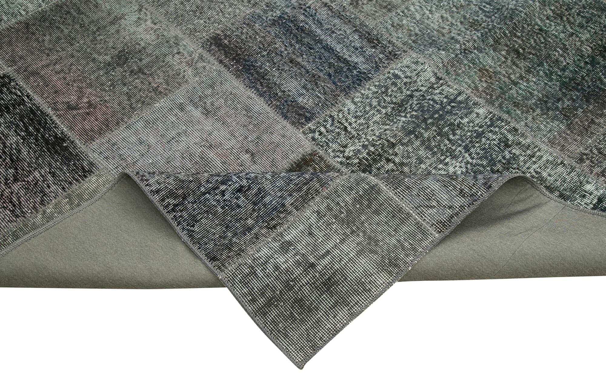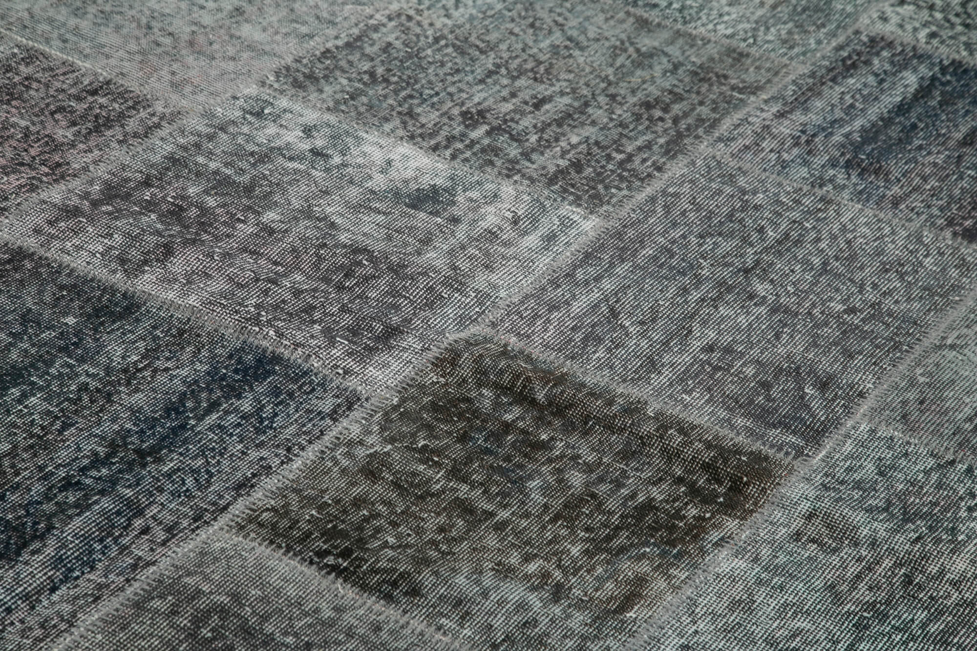 Each grey patchwork carpet is carefully selected from vintage carpets aged between 30 and 70 years, then cleaned and washed using special techniques that neutralize original colors while subtly altering shades for a refreshed yet authentic look. This Turkish patchwork rug combines the charm of old-world design with modern durability, making it an ideal centerpiece for any décor style.