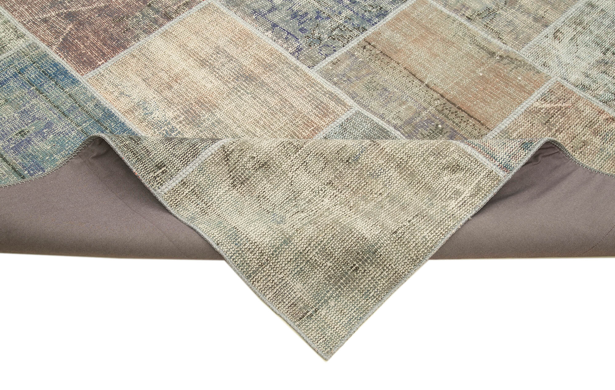 Kirk Yama Grey Patchwork Cotton Wool Handmade Area Rug 8'6'' x 11'7''