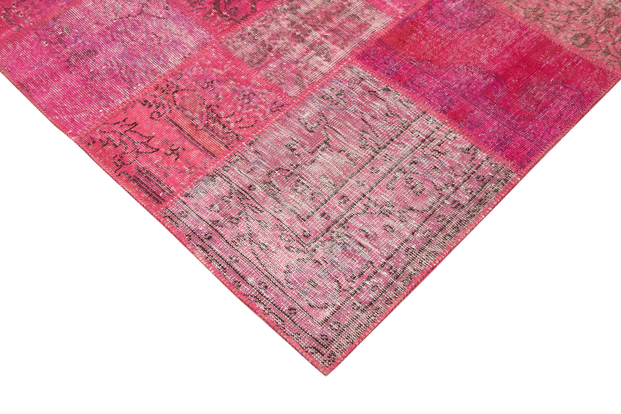 Transform your floors with this handcrafted floor covering that combines vintage artistry with modern durability. Its soft wool area rug texture provides cozy comfort while the durable cotton carpet foundation guarantees lasting performance. Whether placed in a living room or bedroom, this pink patchwork carpet enriches your home with natural fibers and timeless design.